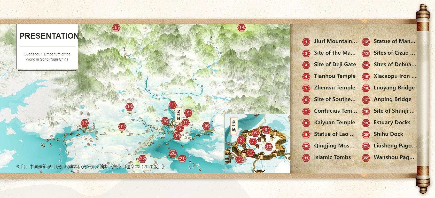 “Quanzhou: Emporium of the World in Song-Yuan China” comprises a series of cultural properties which date back to that period and still shine. These sites are distributed throughout the Quanzhou Bay region, with today’s urban core as their center.