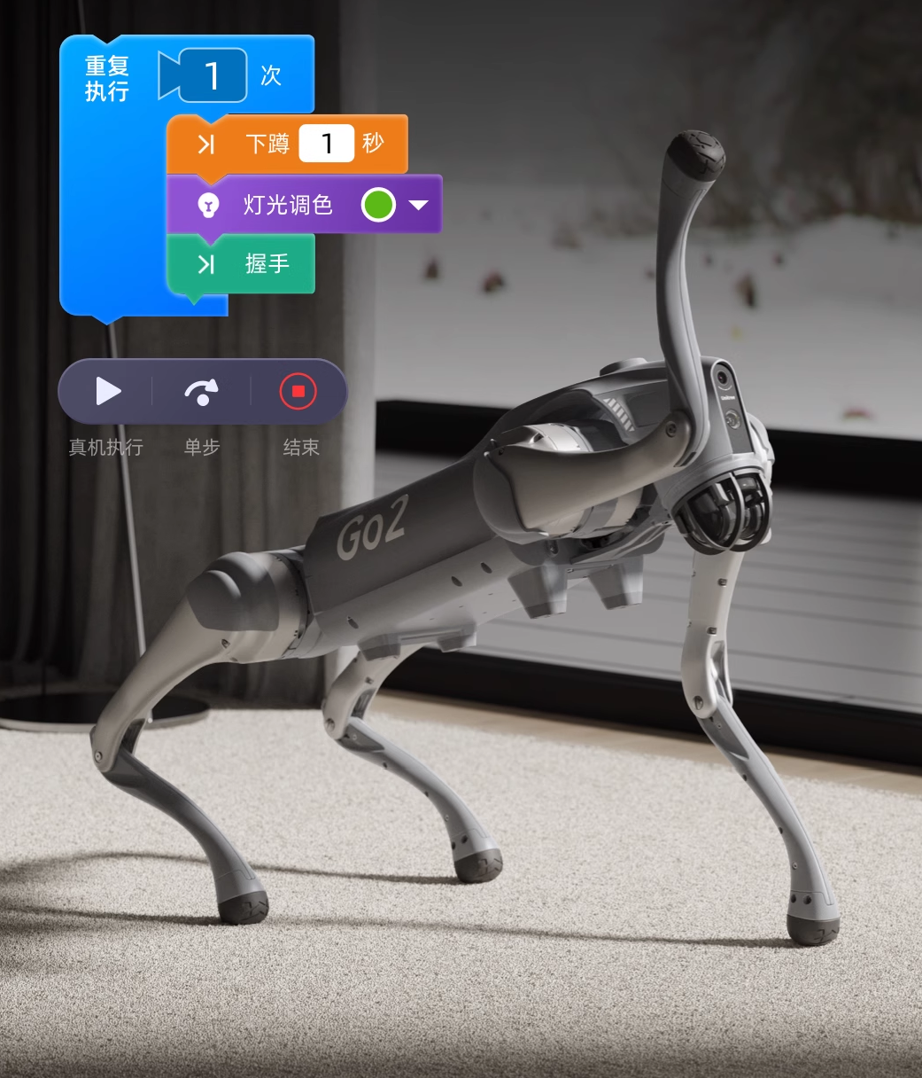 The operation interface is simple and intuitive. With easy graphic drag-and-drop programming, the robot dog can follow programmed instructions.