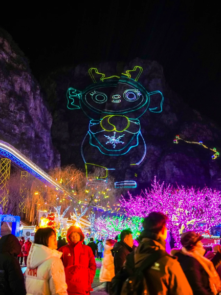 This year's festival brings the fantastical world of the classic Chinese animation Havoc in Heaven to the icy gorge of Longqingxia. More than 20 large-scale themed ice installations and over 150 finely crafted ice sculptures recreate iconic scenes from the animation. Each night, a scheduled Mountain Laser Show lights up the scenic area, and visitors may encounter NPCs showcasing distinctive northern ethnic characteristics.