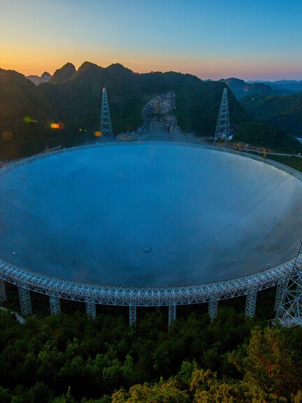 China Sky Eye, officially known as the Five-hundred-meter Aperture Spherical Telescope (FAST), is located in a natural karst depression in Dawodang, Kedu town, Pingtang county, Qiannan Buyi and Miao autonomous prefecture, Guizhou province. It is the world's largest and most sensitive single-dish radio telescope, with a sensitivity ten times that of Germany's Effelsberg 100-meter Telescope and 2.25 times that of the Arecibo 300-meter Telescope in the United States. Capable of capturing fainter signals and detecting dimmer celestial objects, FAST helps humanity unravel the mysteries of the universe.