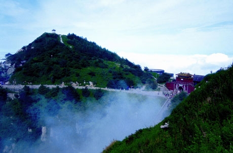 From the summit, clouds spread across the sky like a giant floating jade plate, creating a mesmerizing spectacle.