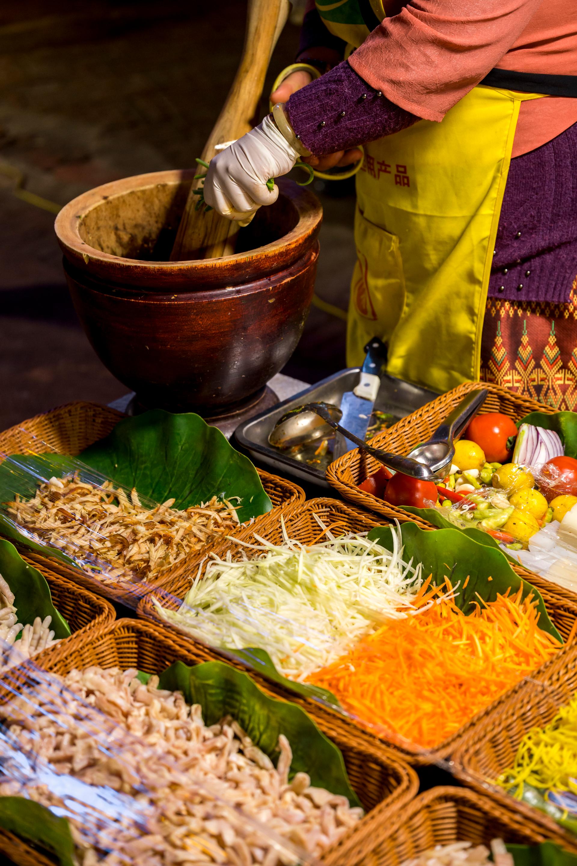 Savor Authentic Dai Cuisine: Wander through the bustling night markets and local villages to sample signature dishes like Dai-style barbecue, pineapple rice, and shouzhuafan (hand-eaten rice).