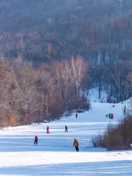 Beidahu has roughly 160 snow days a year. Snow depth averages about 1 meter at the base, 1.5 meters mid-mountain, and up to 2 meters above 1,000 meters elevation. The snow is dry, fine, and powdery—excellent for skiing. The resort features 64 ski trails, 11 high-speed lifts, and 7 magic carpets, along with star-rated hotels and well-equipped service centers to offer a one-stop, high-quality ski vacation.