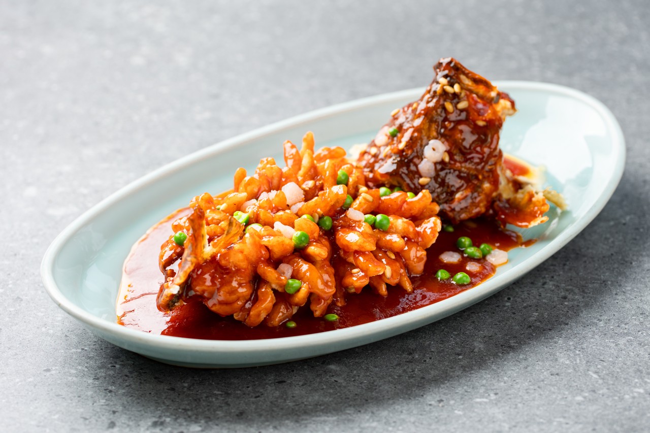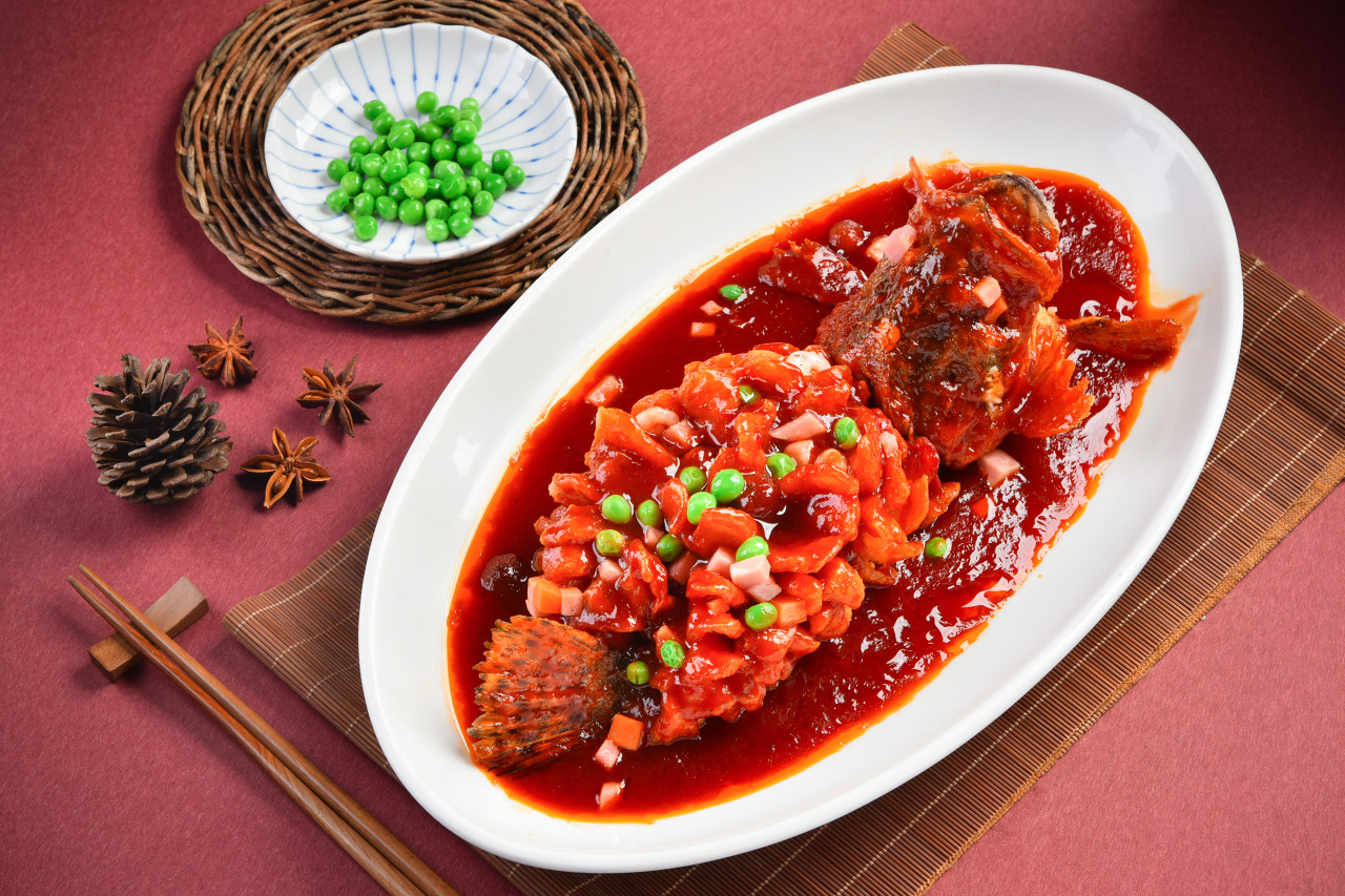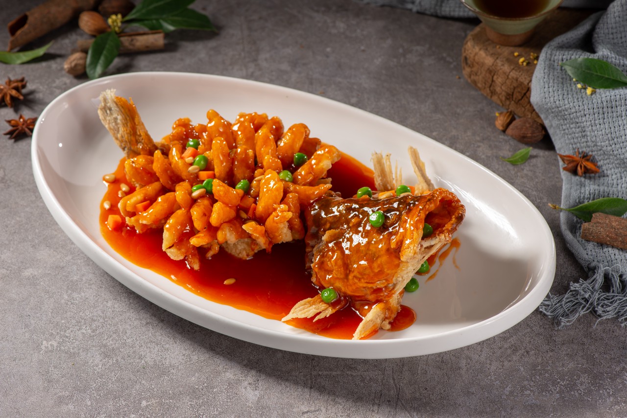 Squirrel Fish, also known as Songshu Guiyu, is a signature dish of Suzhou cuisine that brings together color, aroma, flavor, and presentation. Made with fish such as yellow croaker, carp, or mandarin fish, it is deboned, shaped, scored with decorative cuts, deep-fried until set, and then topped with a sweet-and-sour sauce. The dish is named for its resemblance to a squirrel. Golden in color and crisp in texture, it offers a balanced sweet-and-sour taste, with seasoning centered on ketchup, white sugar, and rice vinegar.