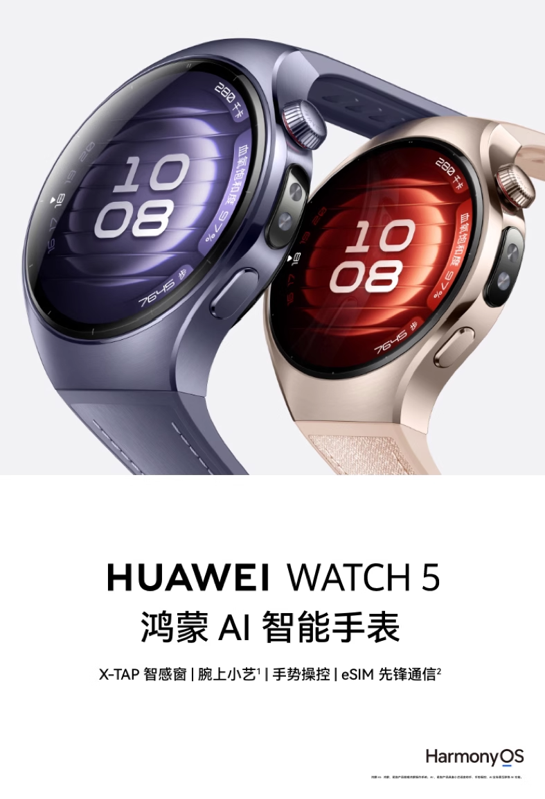 The HUAWEI WATCH 5 is the brand's first HarmonyOS AI-powered smartwatch, featuring the Pangu and DeepSeek dual AI models along with Huawei's proprietary fitness and health intelligence system, delivering a smarter, more connected lifestyle experience.