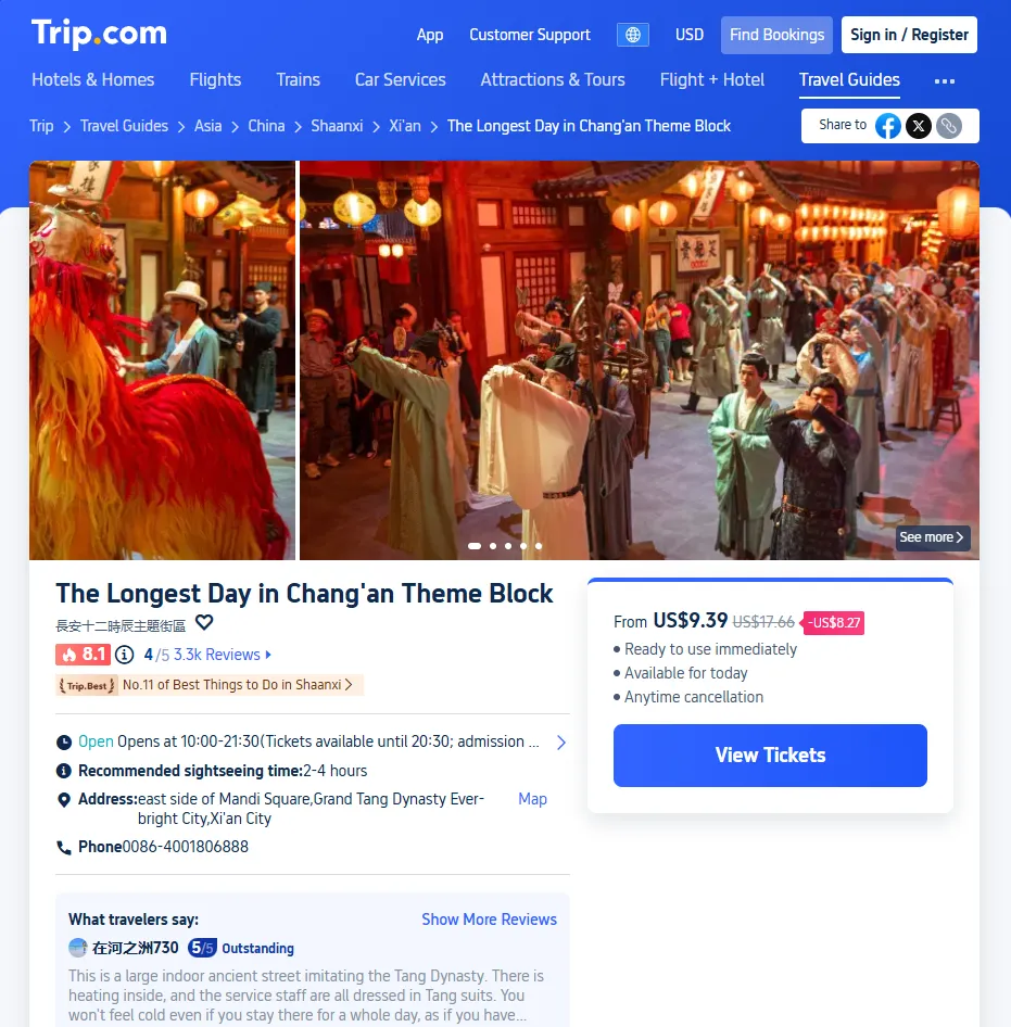Hanfu Dress Immersion: For the fullest experience, visitors are encouraged to wear their own Hanfu before arriving or rent a set at the onsite styling studios once inside, so as to fully embody Tang dynasty characters and capture unforgettable photos.