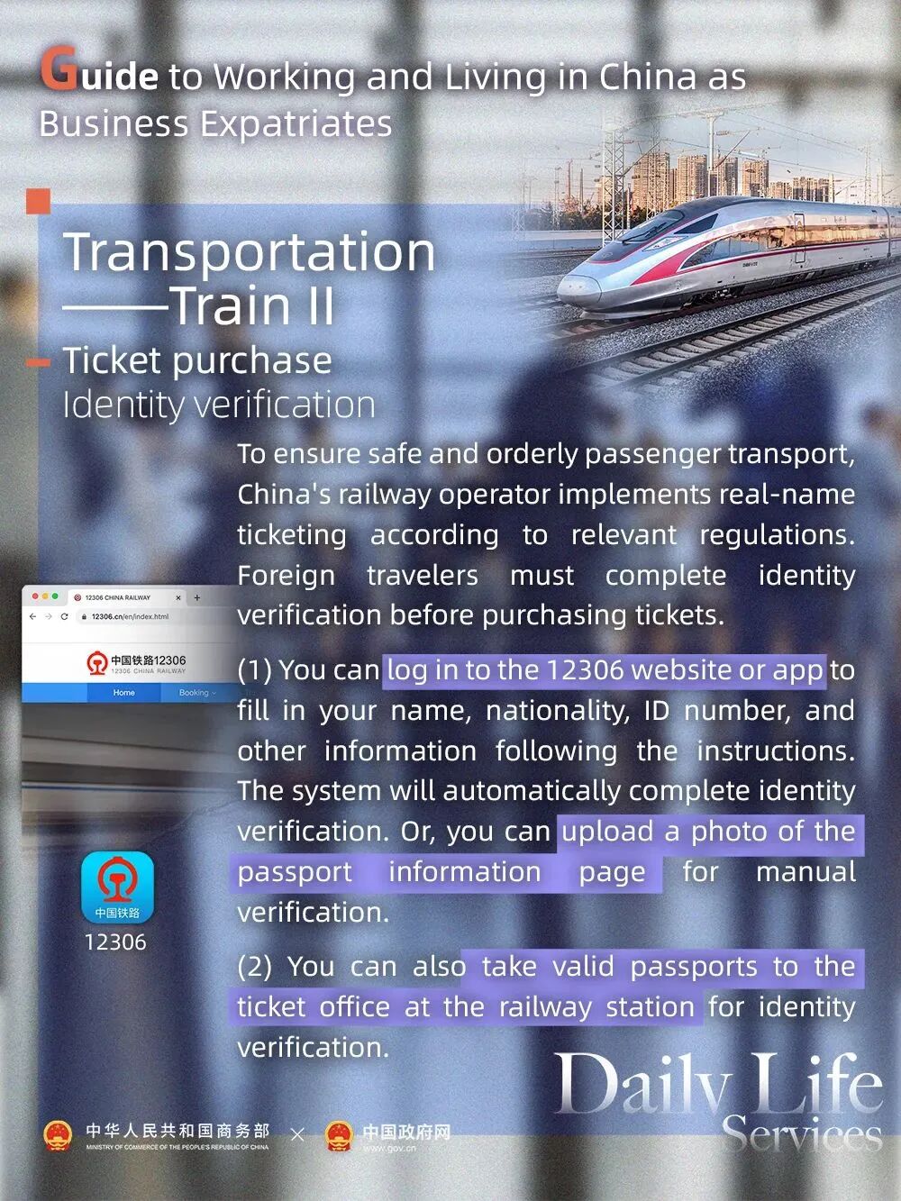 To ensure safe and orderly passenger transport, China's railway operator implements real-name ticketing according to relevant regulations. Foreign travelers must complete identity verification before purchasing tickets.