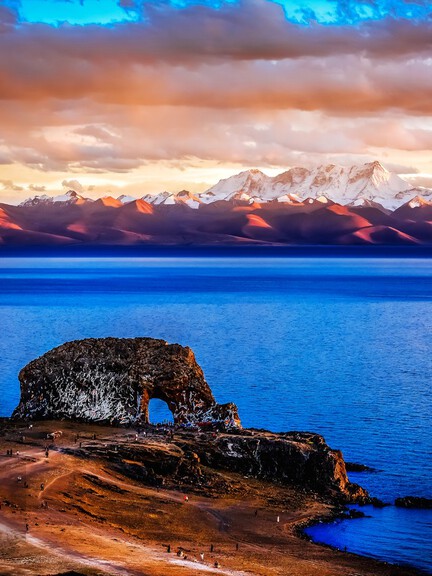A recent social‑media sensation on the northern shore of Lake Namtso (about a two‑hour drive from Zhaxi Peninsula), this spot is named for a natural stone arch resembling an elephant drinking from the lake. The massive rock forms a lifelike elephant silhouette, its "trunk" dipping into the water—creating a breathtaking frame of lake and mountains. It has become one of Lake Namtso's most iconic views.