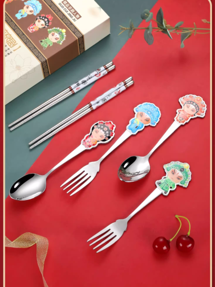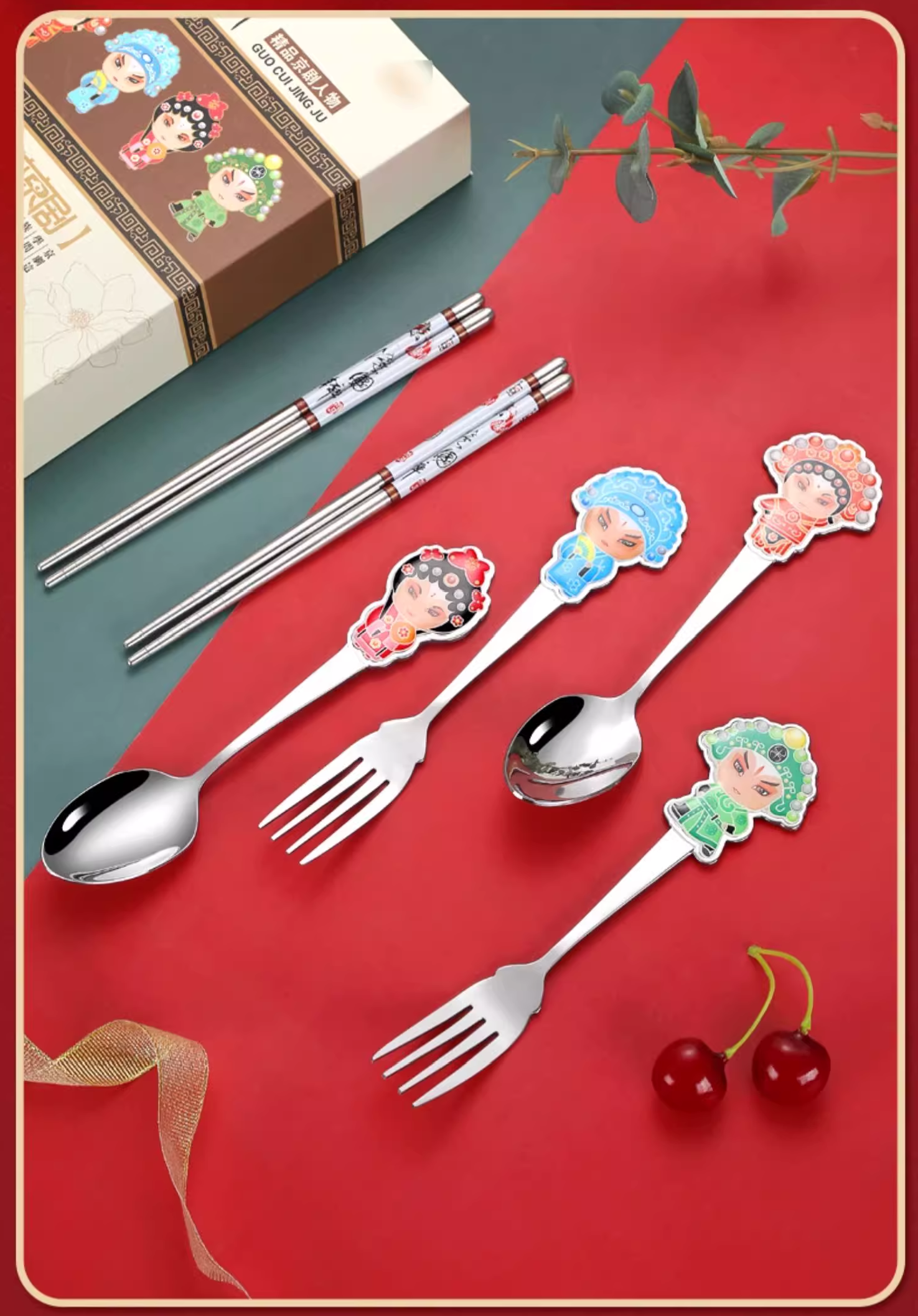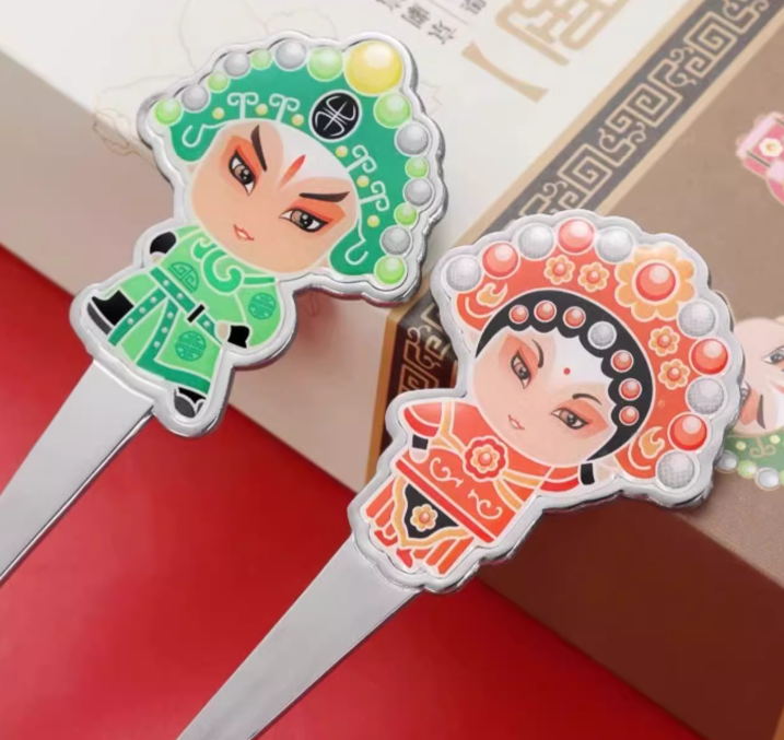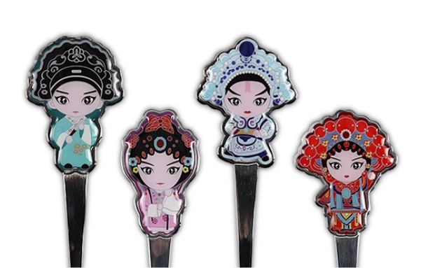 Each utensil tip features a classic Peking Opera character image. Using crystal epoxy resin craftsmanship, the characters appear vivid and lifelike while also providing a heat-insulating effect.