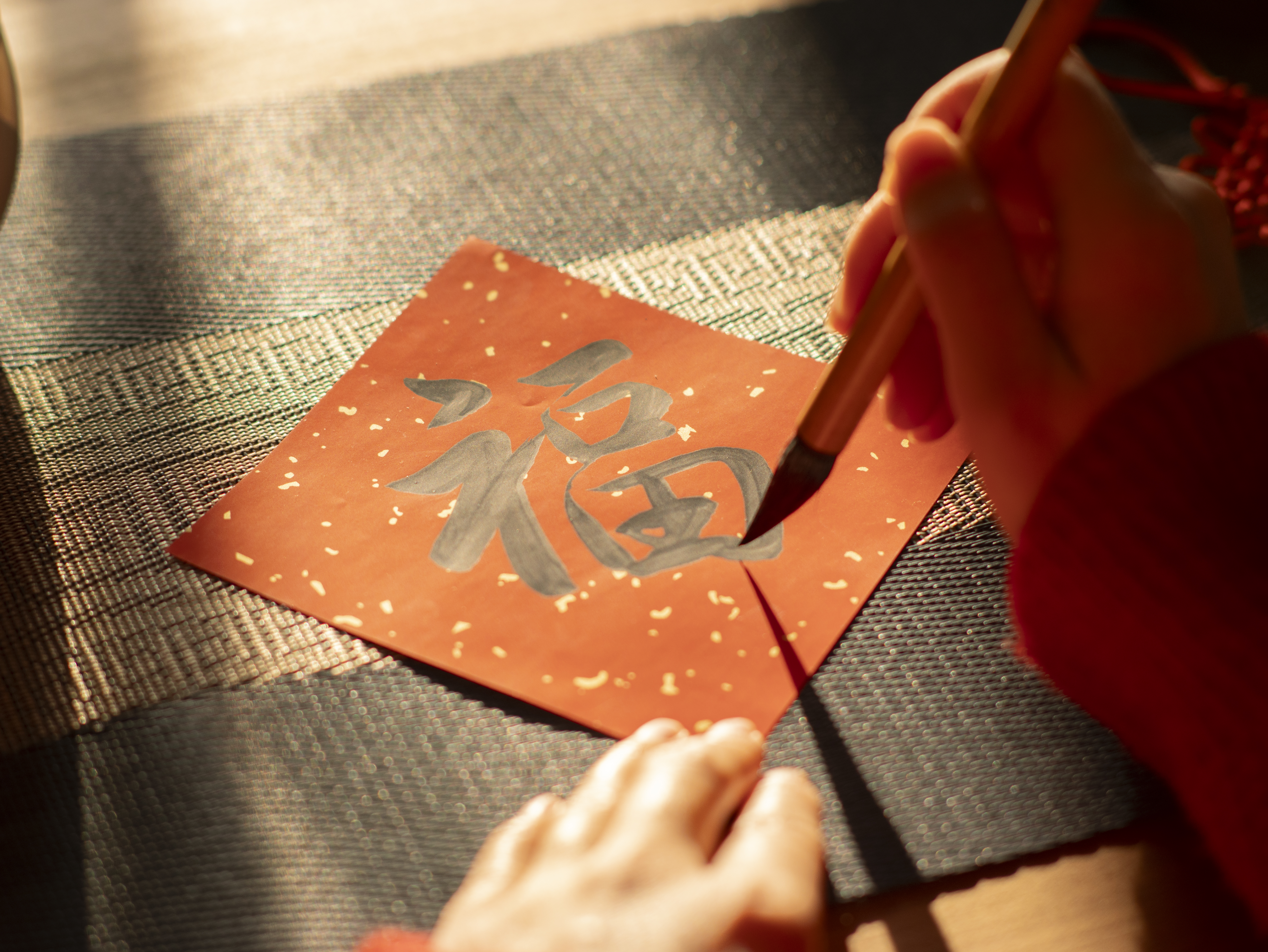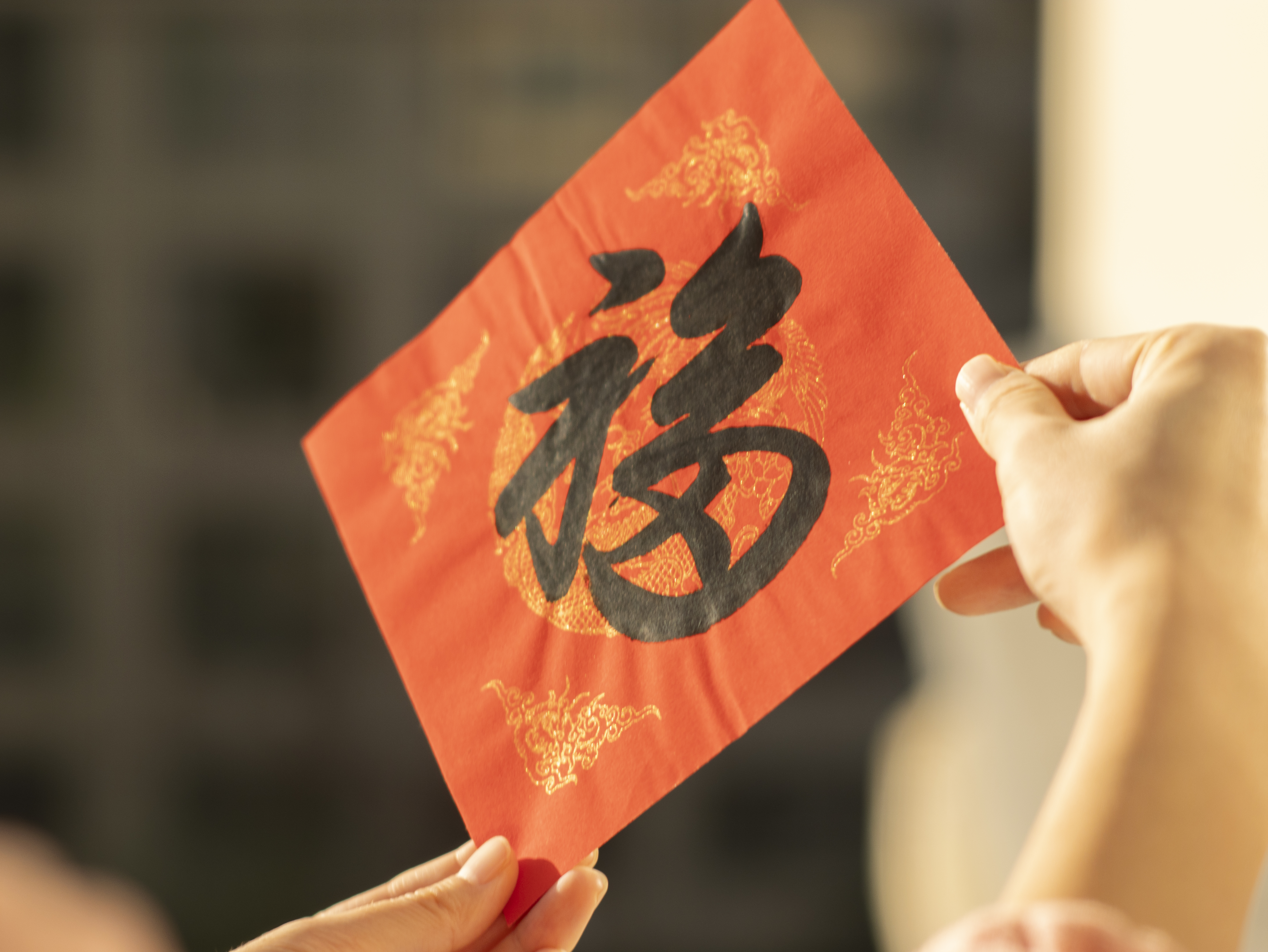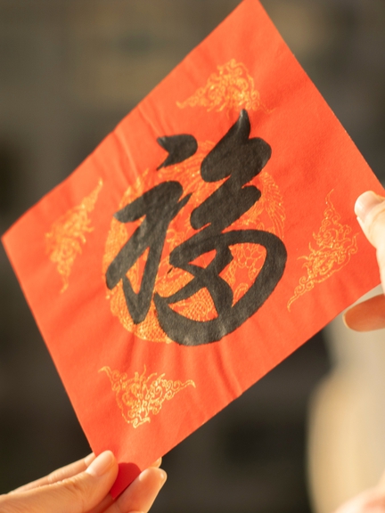 There are traditional rules for pasting the character "Fu". On main doors, it should be pasted upright, meaning "opening the door to welcome good fortune"; if pasted upside down, it symbolizes the arrival of fortune, as the word for upside down sounds the same as "arrive" in Chinese. There is also a folk tradition of carefully drawing the character "Fu" into various decorative designs, including the God of Longevity, longevity peaches, a carp leaping over the dragon gate, abundant harvests of the five grains, and the dragon and phoenix motif, representing harmony and prosperity.