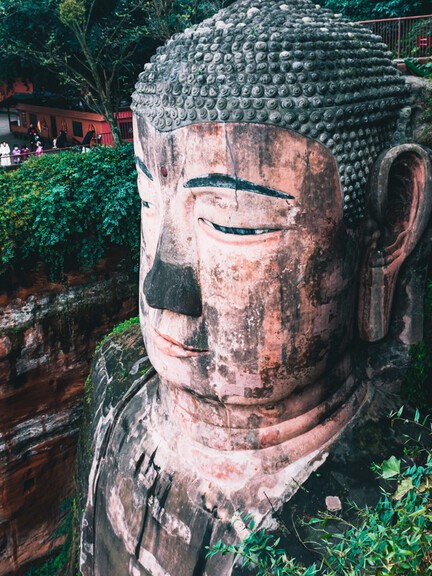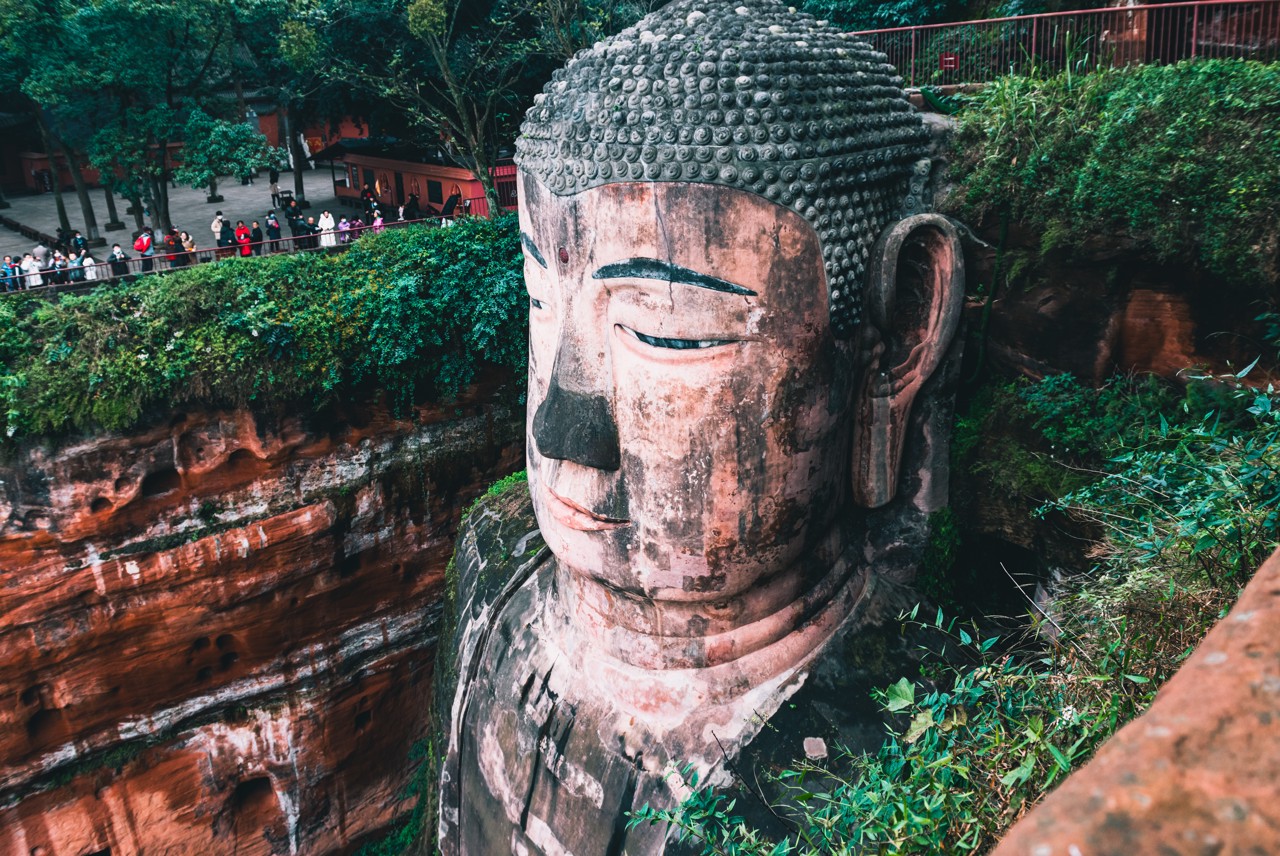 Answer: The Buddha’s head is covered with 18 circles of coiled hair, with the 4th, 9th, and 18th circles containing horizontal drainage channels. Additional drainage and ventilation features include: interconnected caves behind the ears, openings at both sides of the chest (not joined). Together these form a hidden internal system of drainage, moisture reduction, and ventilation, greatly reducing weathering and erosion.