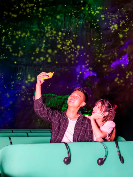 The Firefly Stream Cave is renowned for its firefly displays, rare in Asia; its diverse stalactite formations; and its expansive ecological Butterfly Valley, one of the largest of its kind in regions north of the Yangtze River. With a year-round temperature ranging from 17°C to 20°C, the cave offers a mysterious yet serene environment. Inside, tens of thousands of fireflies illuminate the cavern ceiling like stars twinkling in a clear night sky, creating a mesmerizing spectacle. Visitors glide through the darkness on rope-drawn boats, immersing themselves in a fairytale world aglow with "starlight."