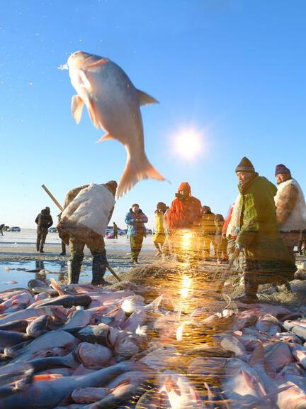 Flourishing in Qian Gorlos Mongol Autonomous County, Songyuan City, Jilin Province, the Chagan Lake Winter Fishing is a time-honored tradition of fisheries production that faithfully retains original techniques like drilling holes in the ice for net placement and employing horse-drawn winches.