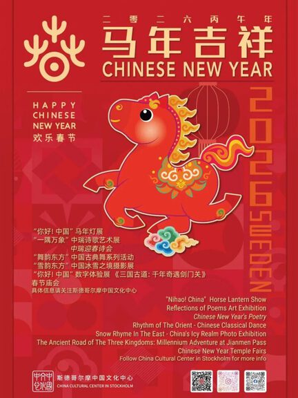 In traditional Chinese culture the horse symbolizes success and great strides forward; in Swedish culture it is also an auspicious totem. Join us at 4:30 p.m. on February 1, 2026, at Kungsträdgården, Stockholm, for dragon and lion dances, music and blessings as the Year of the Horse lanterns are illuminated.