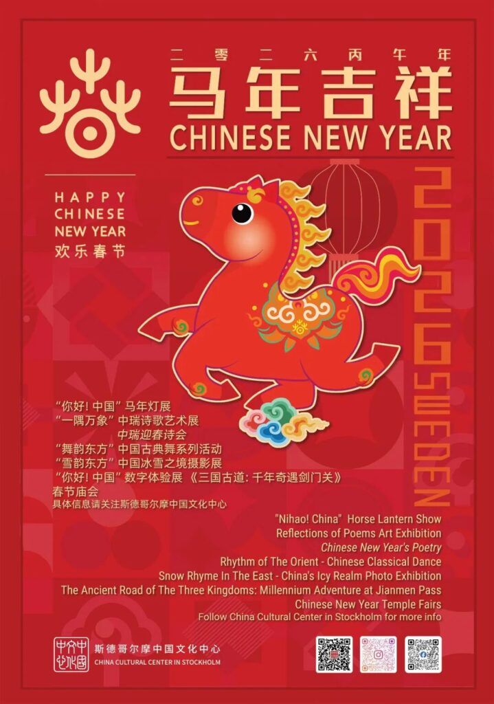 Success is coming, and good fortune spreads across Sweden. To celebrate the Year of the Horse, the China Cultural Center in Stockholm has curated a series of Spring Festival events. From lantern displays to immersive digital experiences, from poetic arts to classical dance, and from lively temple fairs to winter ice-and-snow landscapes, visitors in Stockholm, Gothenburg or passing through Arlanda Airport can experience the charm of the Chinese Spring Festival.