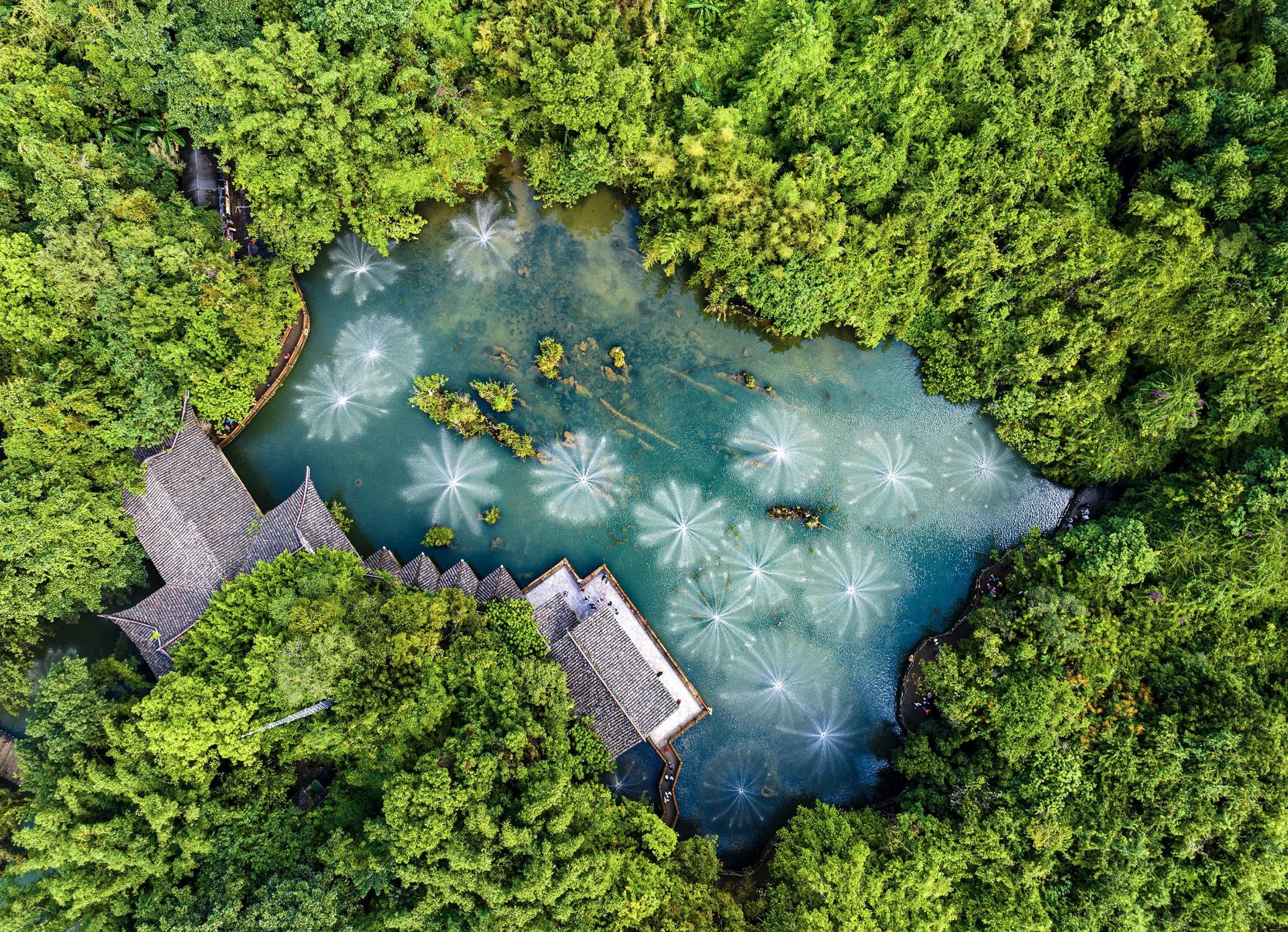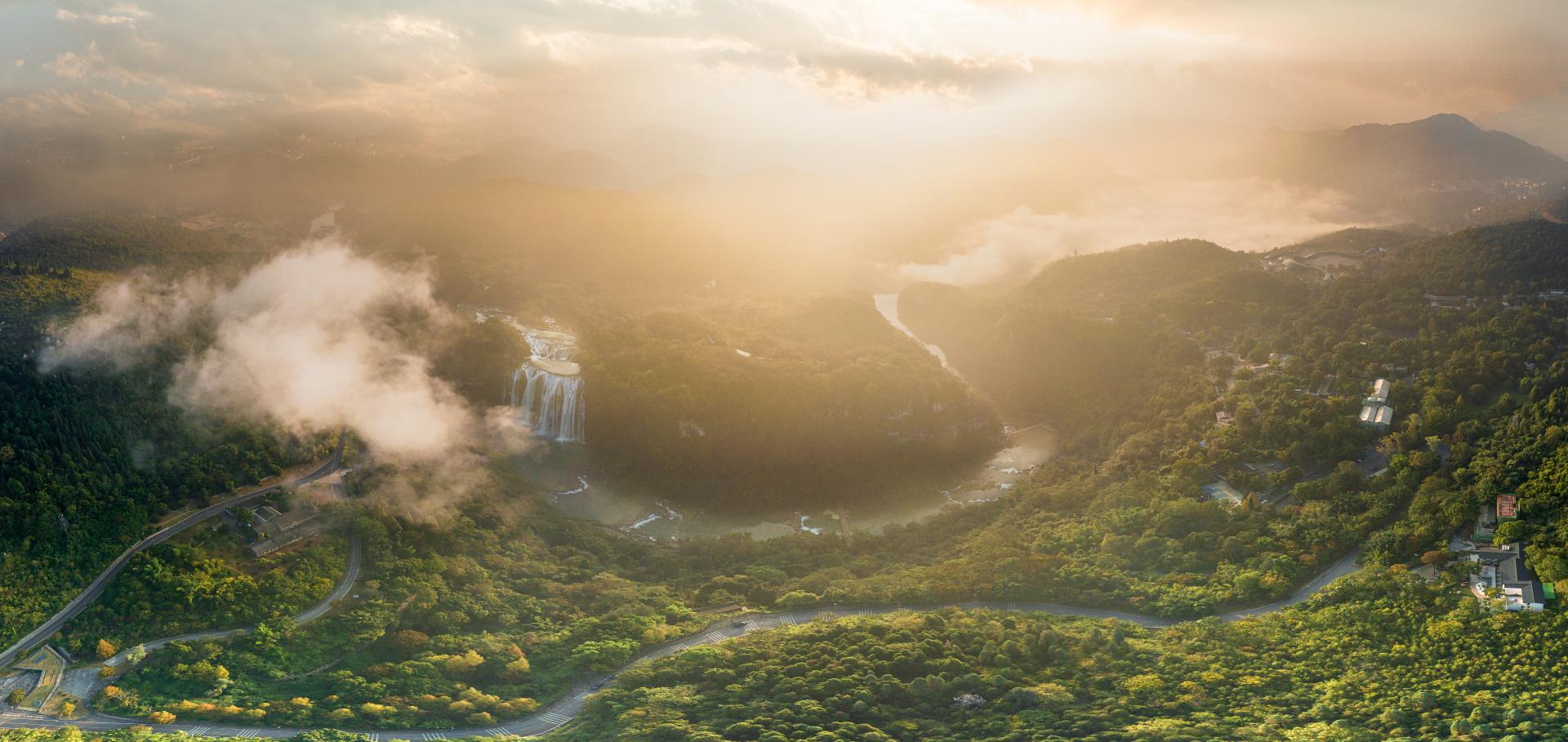 The Huangguoshu National Park is in southwestern Guizhou, at an average altitude of 900 meters and covering 163 square kilometers. Centered on the magnificent Huangguoshu Waterfall, the park contains 18 waterfalls of varying size and character—each majestic, distinctive, dramatic, or delicate—together forming an extensive waterfall group. This cluster has been recognized by Guinness World Records as the world's largest group of waterfalls and is officially listed in the Guinness World Records.