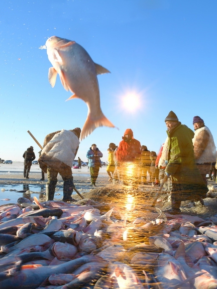 Most part of the Chagan Lake lies within Songyuan City in Jilin Province. As one of China's best-known freshwater lakes, Chagan Lake is rich in aquatic resources and is home to 68 fish species, including bighead carp, carp, grass carp, and crucian carp. The lake still preserves one of the most ancient fishing methods practiced by northern ethnic groups in China. In 2008, the custom of Chagan Lake winter fishing was inscribed on the Representative Items List of State-level Intangible Cultural Heritage Items.