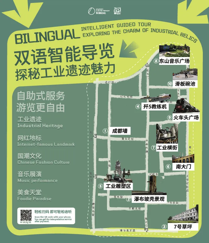 Blending elements of its industrial past with a vibrant contemporary scene, the Eastern Suburb Memory features a diverse mix of repurposed factory buildings, preserved industrial machinery, art exhibition venues, a performing arts center, and a cultural and creative commercial district. Soviet-style red brick workshops, steam locomotives, chimney stacks, and water towers stand side-by-side with modern digital cultural and creative establishments, trendy pop-up shops, and artistic coffee houses. Sculptures and art installations are scattered throughout the site, while towering concrete structures host avant-garde art exhibitions, and the old boiler house has been transformed into a thriving Live House. The result is a dynamic fusion where raw industrial aesthetics meet cutting-edge contemporary culture.