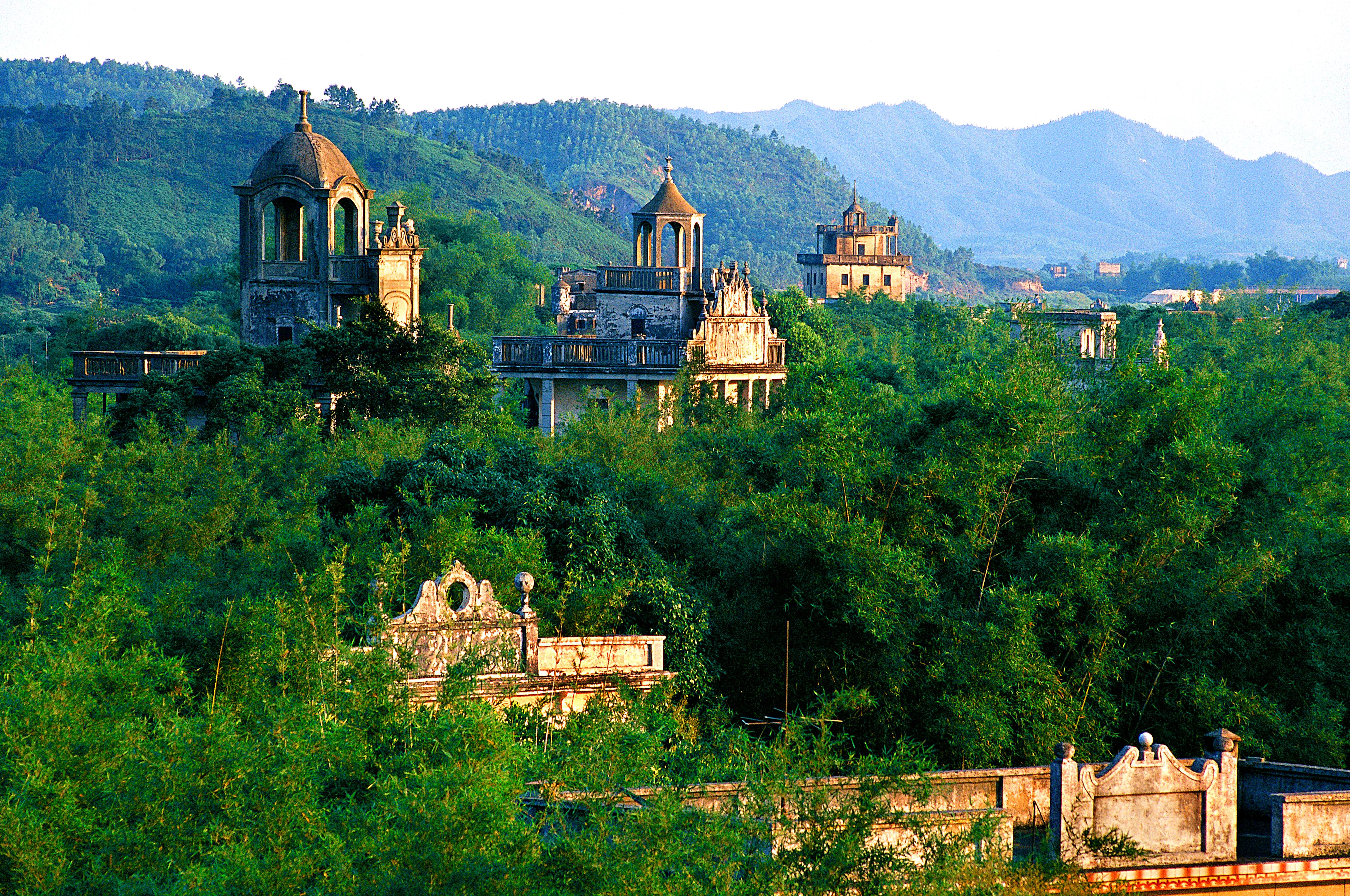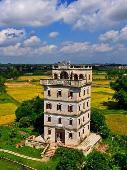 The Kaiping Diaolou are located in Kaiping City, Jiangmen, Guangdong Province. These multi-story tower-like structures combine defensive, residential, and architectural features, showcasing a unique blend of Chinese and Western design. Here, visitors can see houses influenced by styles from ancient Greece, ancient Rome, and other Western traditions. The most iconic diaolou are concentrated within the Kaiping Diaolou Cultural Tourism Zone.
