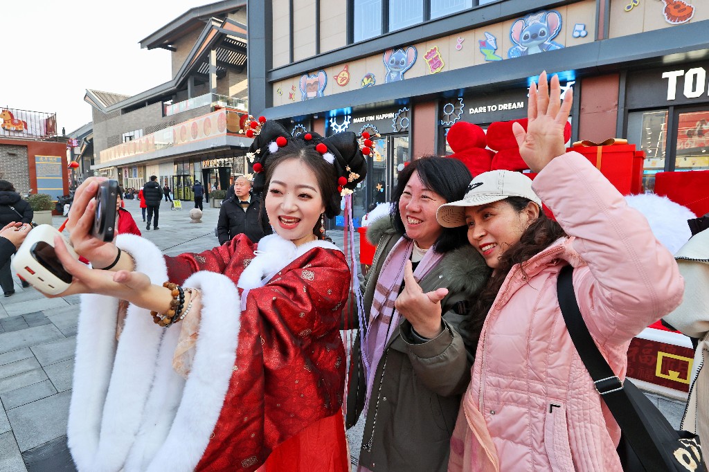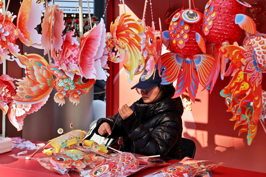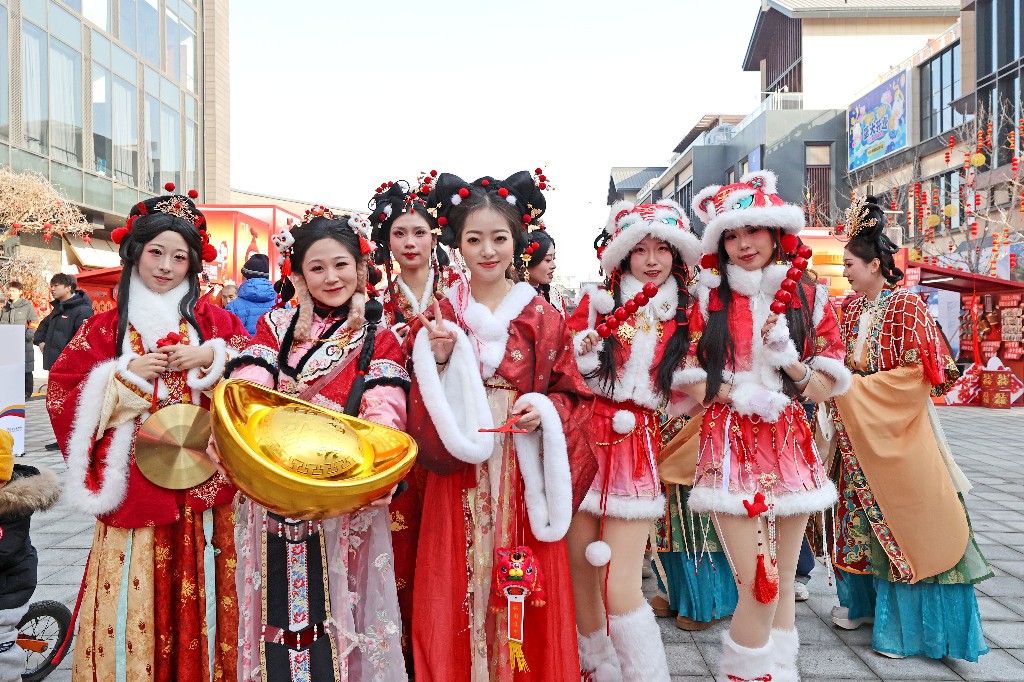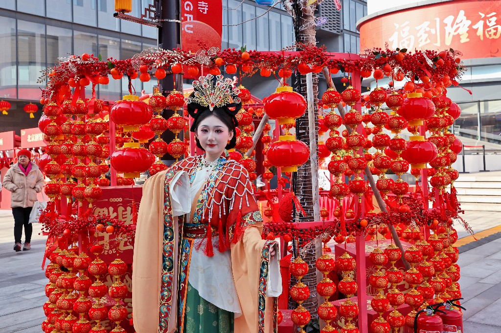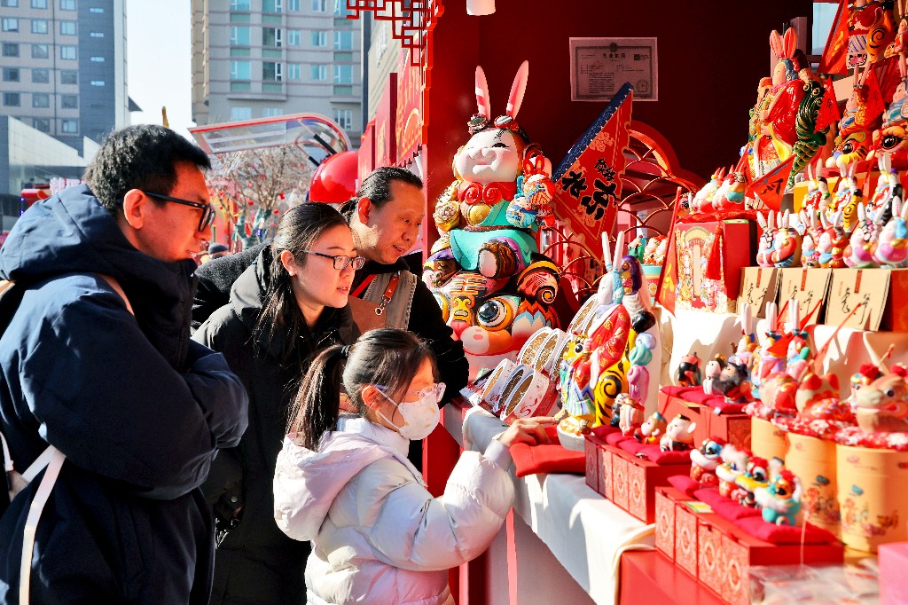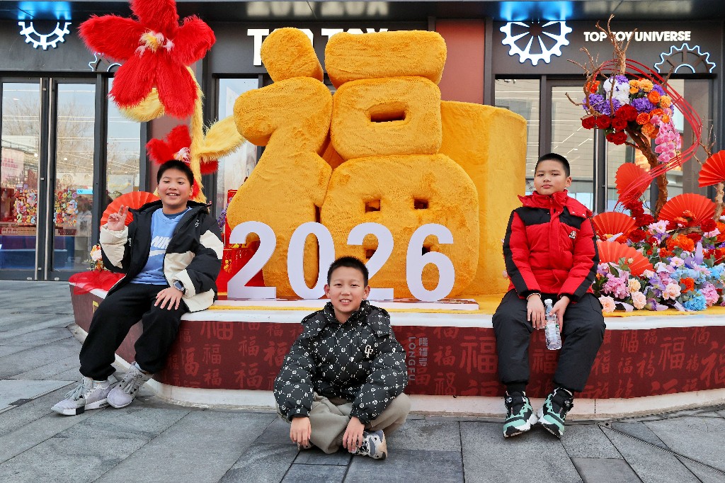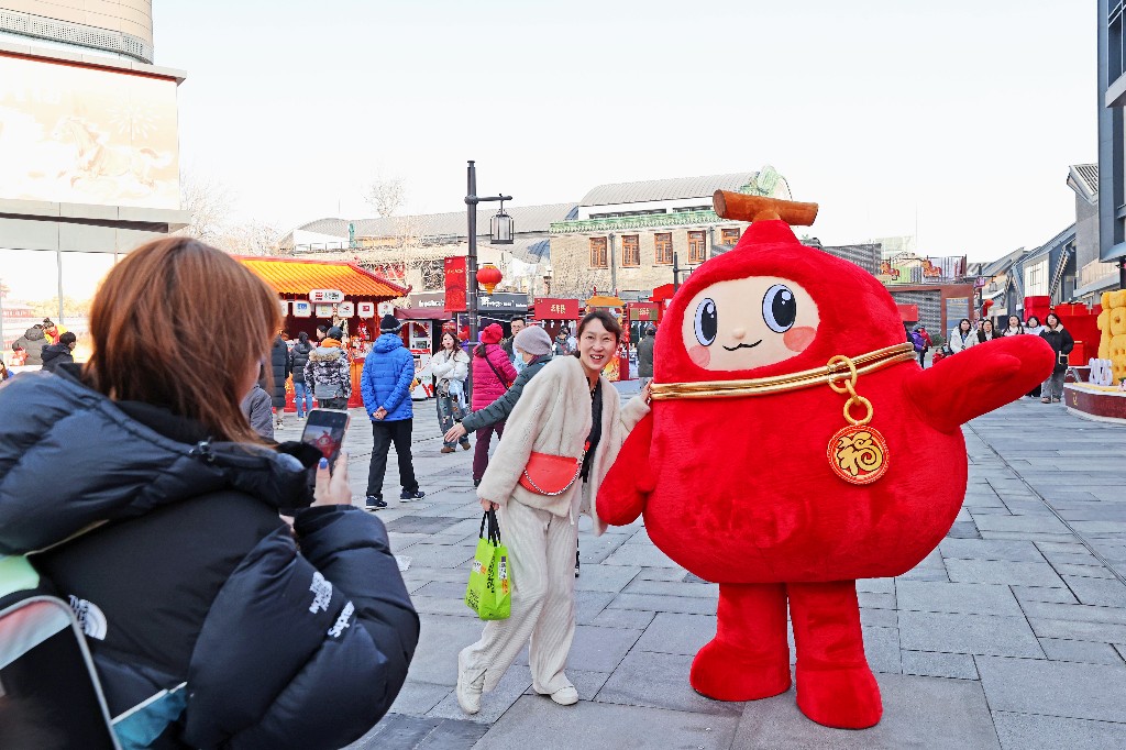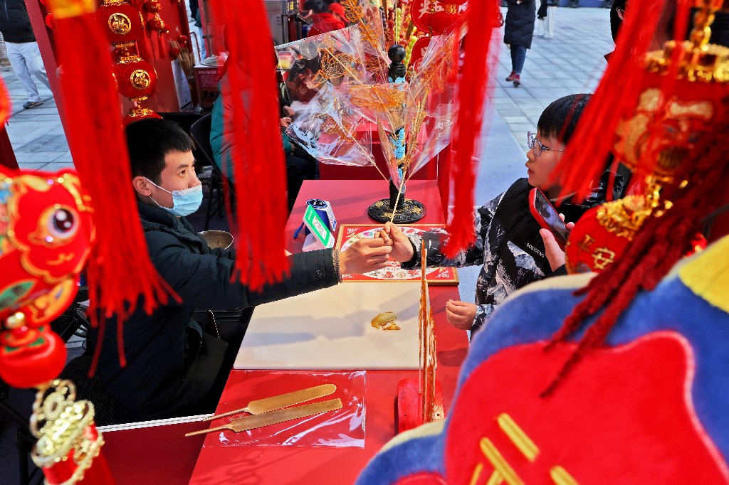 On Feb. 4, the "Galloping into the Spring Festival: Longfu Temple Chic Market" Spring Festival bazaar opened in the Longfu Temple commercial district in Dongcheng district, Beijing. Renowned brands — including Cathay Bookshop, Beijing Enamel Factory, Pop Mart, Donglaishun and Wuyutai — showcased newly launched Year of the Horse cultural-creative products and special "Spring Festival gifts." The bazaar also featured several Year of the Horse–themed photo walls and interactive performers engaging visitors.