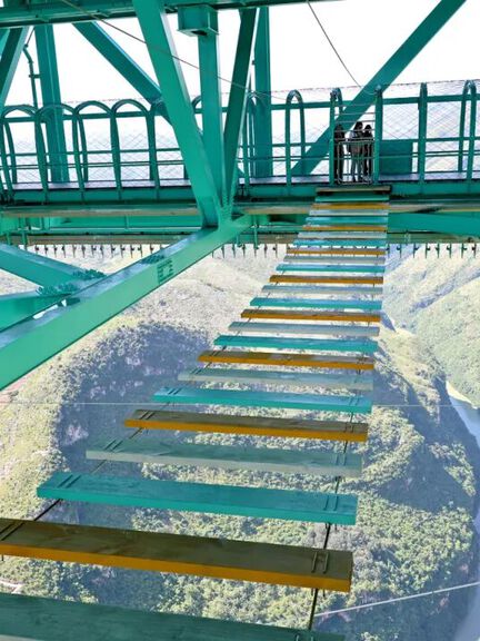Thrill-seekers can enjoy activities like high-altitude bungee jumping and a high-speed racing runway. For panoramic canyon views, visitors can walk on glass walkways, relax in glass observation halls, or take high-speed elevators to the top of the bridge towers. Unique experiences include mailing postcards from the heights and sipping coffee "among the clouds."