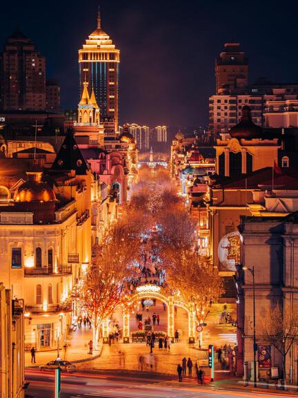 Located in Harbin's Daoli District, Heilongjiang Province, Central Street stretches 1,450 meters from the Flood Control Memorial Tower on the riverbank to Xinyang Square in the south. Established in 1898 and measuring 21.34 meters wide, Central Street is Harbin's definitive commercial pedestrian street, celebrated as the longest and best-preserved European-style pedestrian street in Asia.
