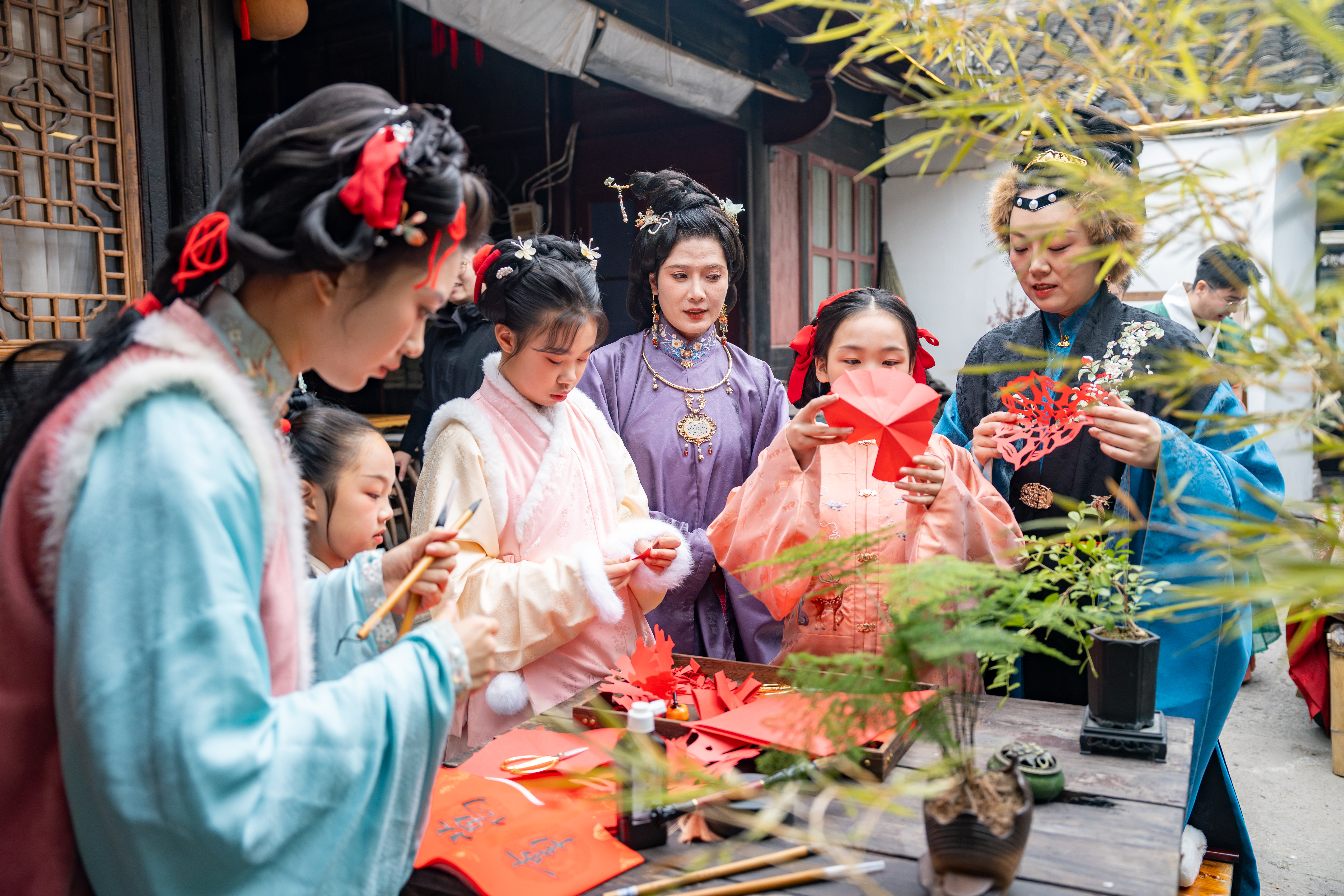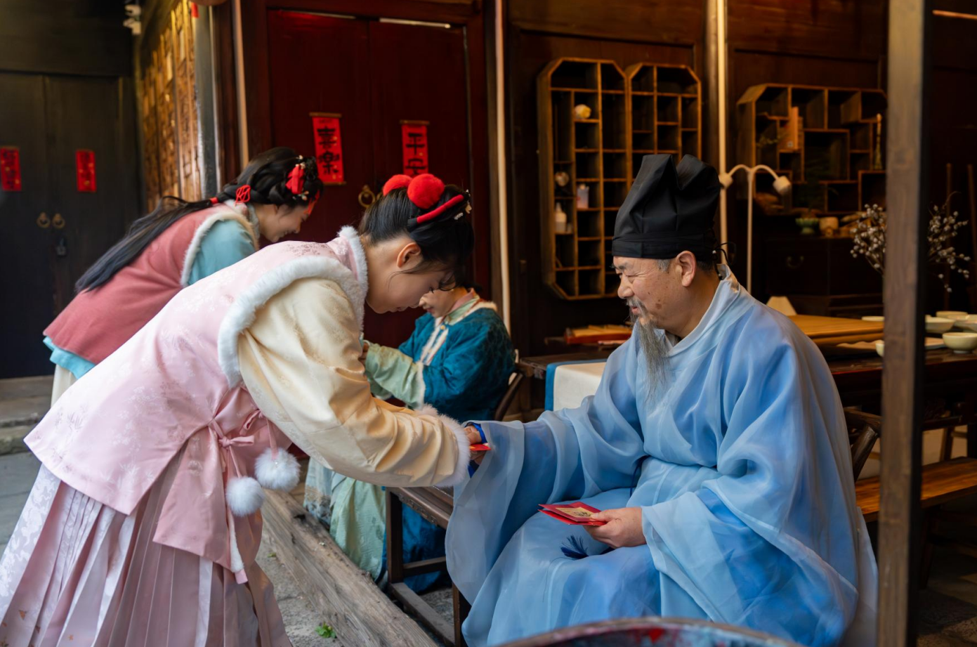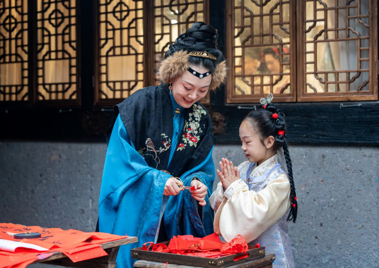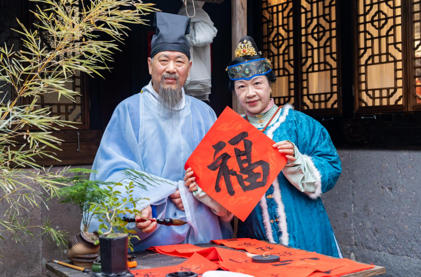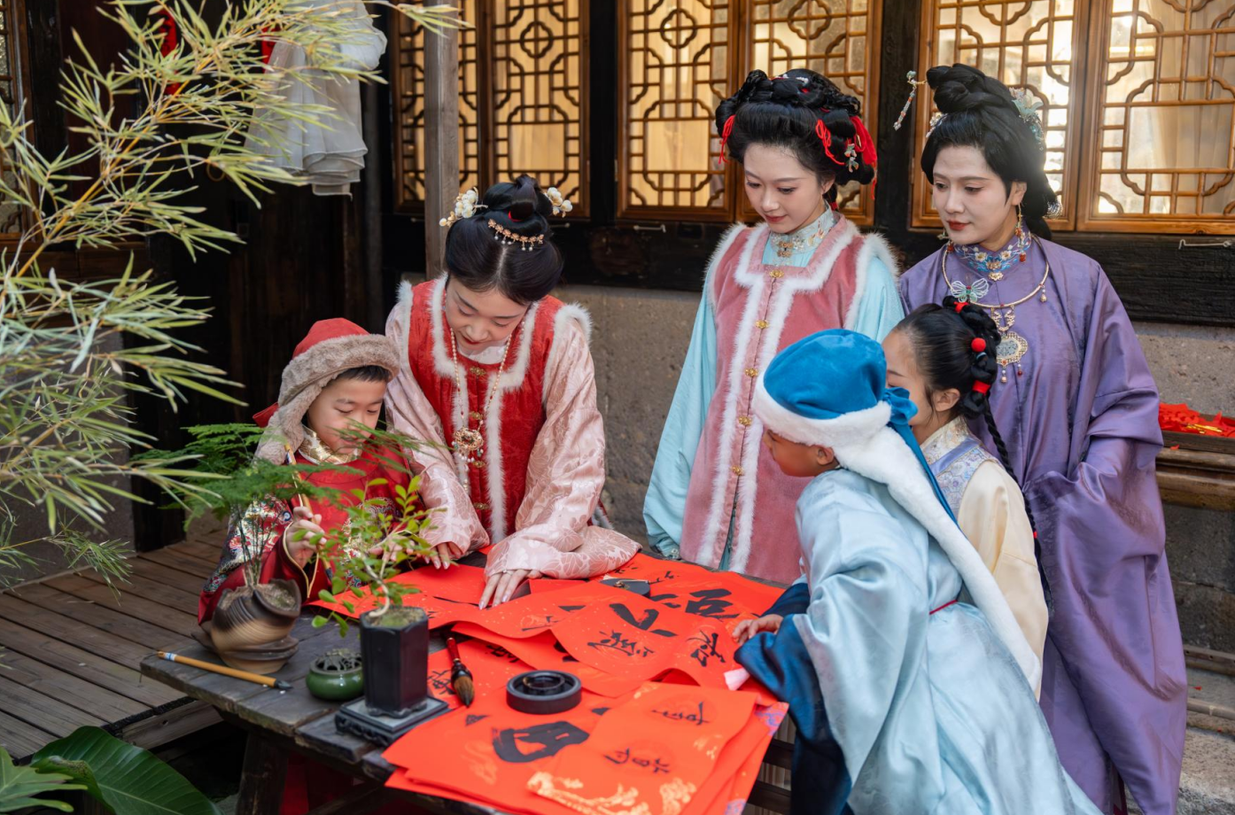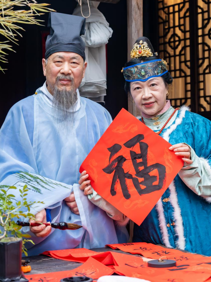 Even more, the rich folk customs of these towns gain deeper ceremonial weight and narrative resonance when experienced in Hanfu. Visitors can pick up a brush to write the character "福" (fortune) or inscribe Spring Festival couplets with their aspirations, join folk processions, or watch demonstrations of intangible cultural heritage—each offering a more immersive way to experience Chinese culture.