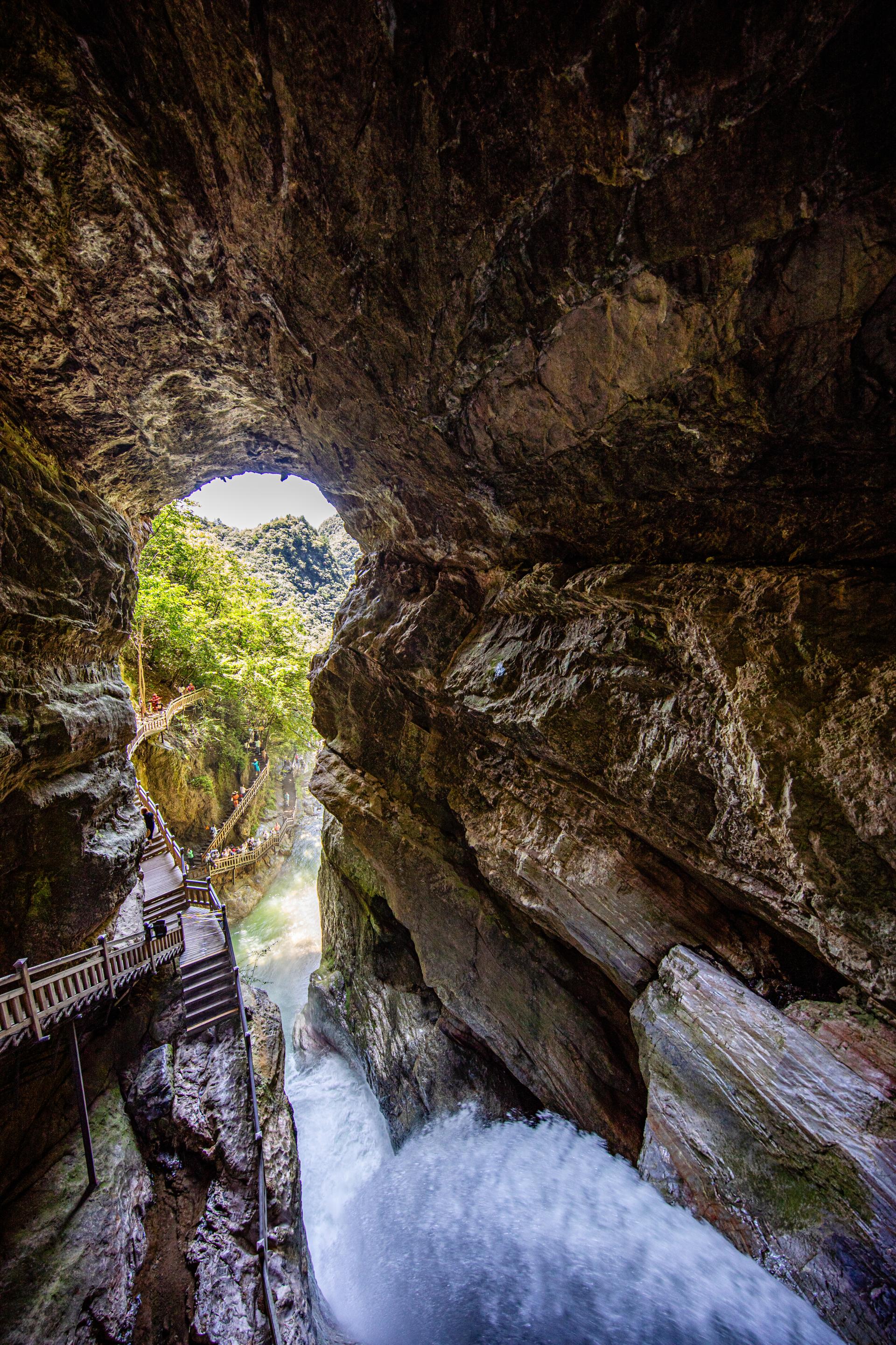 A soaring waterfall cuts through the rock here, while cliffside plank paths intertwine with the culture of the ancient Ba people. A one‑hour hike passes a series of waterfalls, letting visitors appreciate the blend of natural wonders and cultural heritage.