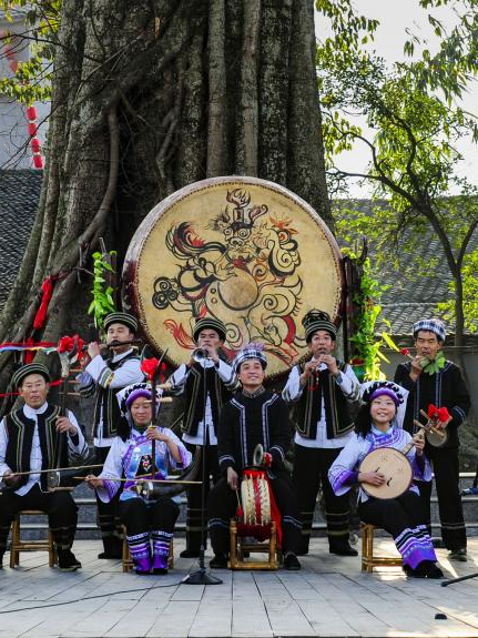 Bouyei Eight-Tone Sitting Singing, also known as "Bouyei Eight-Tone," is a form of folk narrative singing passed down through generations of the Bouyei ethnic group. For centuries, it has been preserved and practiced in villages throughout the Nanpan River basin and has been praised as "a peerless echo of the human world, music of heavenly beauty," "a living fossil of sound," and "an artistic pearl along the Nanpan River." The Bouyei Eight-Tone Ensemble of Xingyi City, Guizhou Province, has been invited on many occasions to perform both in China and abroad.