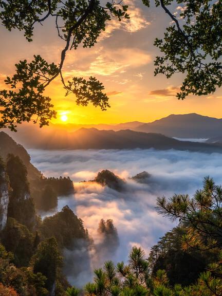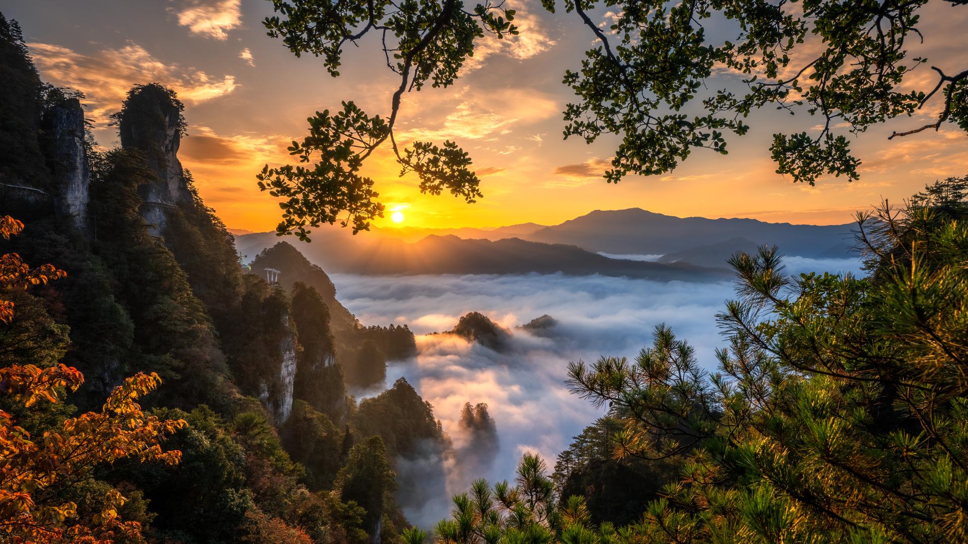 Xianglu Mountain: Take the cable car to the 2,507-meter summit for panoramic views of crimson-clad ridges and rolling seas of clouds. Sunrise and sunset here are particularly magnificent.