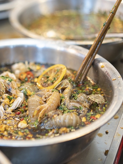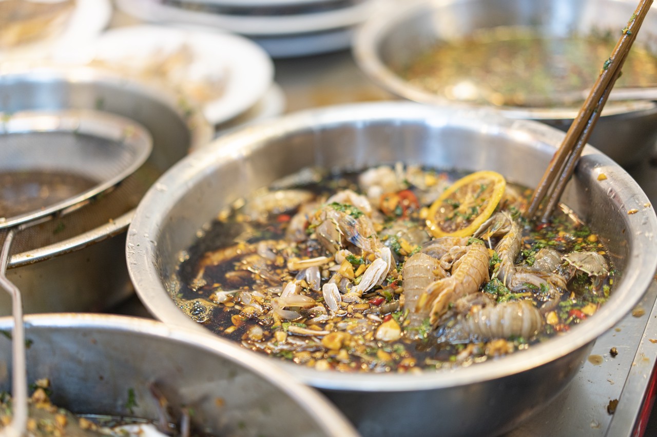 For first-time tasters, it is recommended to start with shrimp, such as Jiwei prawns, or shellfish, like blood clams, which are easier on the digestive system. Avoid eating on an empty stomach; you may have half a bowl of plain congee beforehand to prepare your stomach. It is also advisable to have warm salt water ready for rinsing your mouth afterward to soothe the spiciness from the garlic and spice.