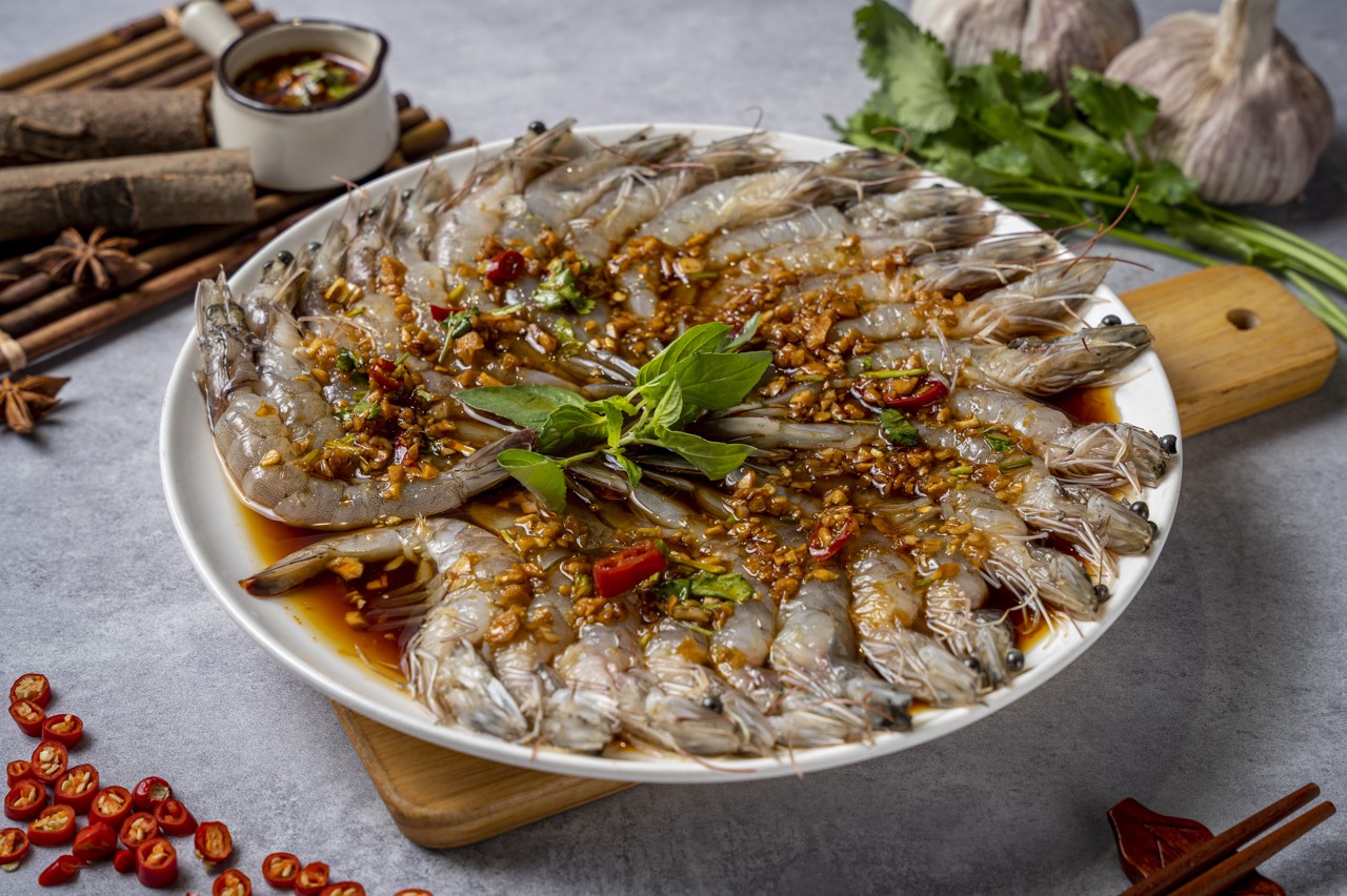 Marinated raw seafood typically includes shrimp, crab, spotted babylon snails, snow clams, and other aquatic products. Instead of being fully cooked, the seafood is cured with high-proof liquor, then combined with accompaniments such as cilantro and minced garlic. After refrigeration, it is ready to be eaten directly.