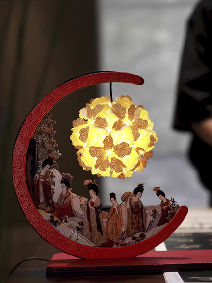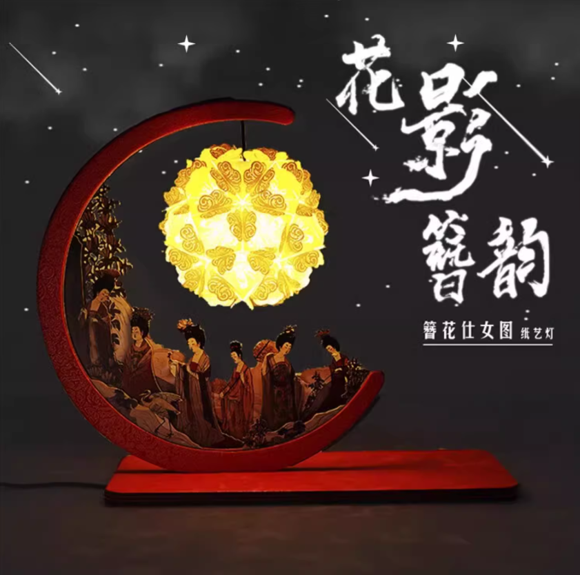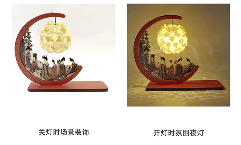 Through multi-layer paper sculpture craftsmanship, this lamp brings the figures and flowers from the painting to life in three dimensions, allowing viewers to immerse themselves in the poetic beauty of a noble garden outing from over a thousand years ago.