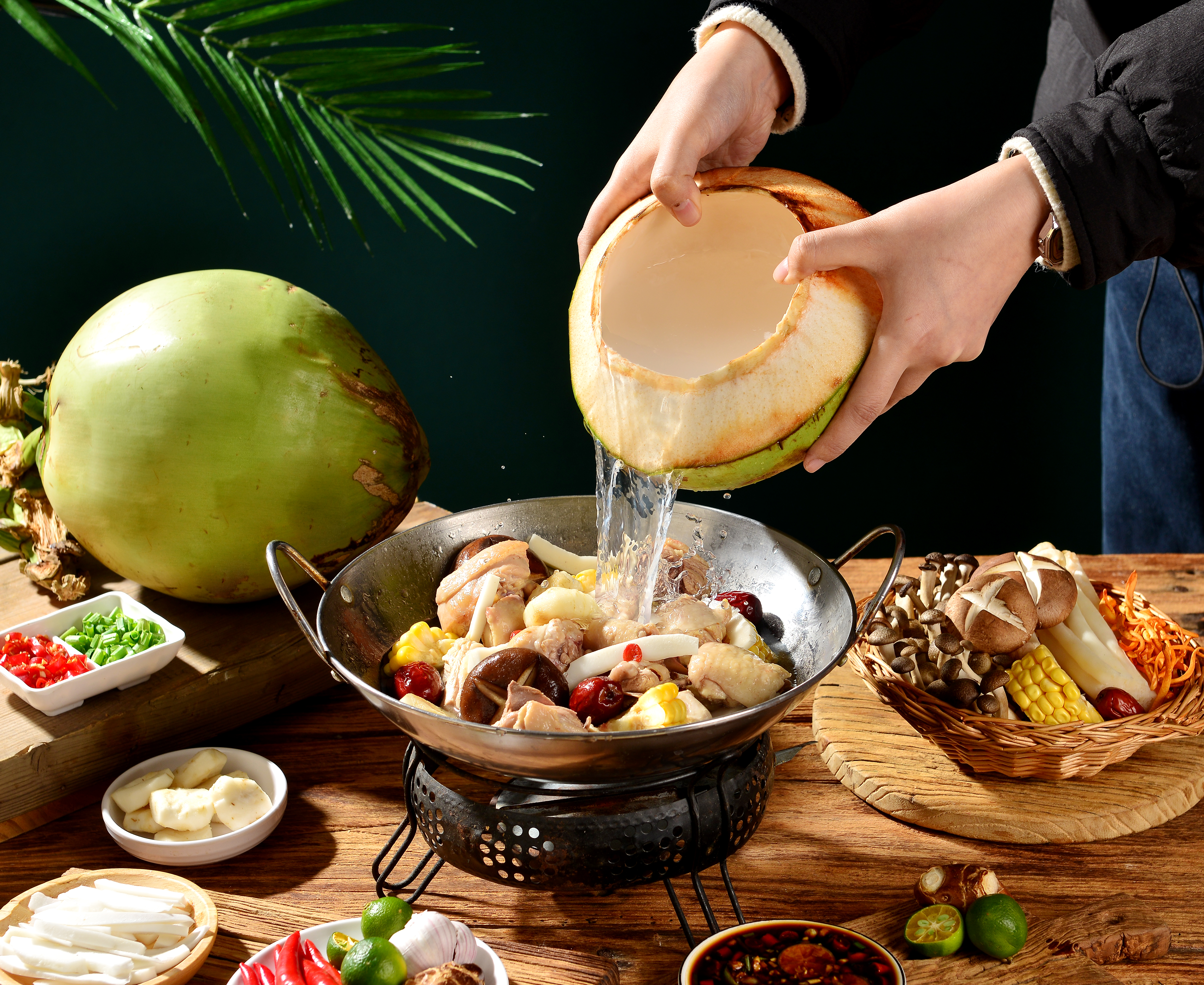 In Hainan, there is a saying that "no banquet is complete without chicken." Whether at a festive family meal or a late-night seaside supper, a bubbling pot of coconut chicken hotpot always brings a touch of coconut groves and ocean breeze to the table. When visiting Hainan, stopping by restaurants such as Coconut Chicken or Coconut Little Chicken is a good way to experience this local specialty.