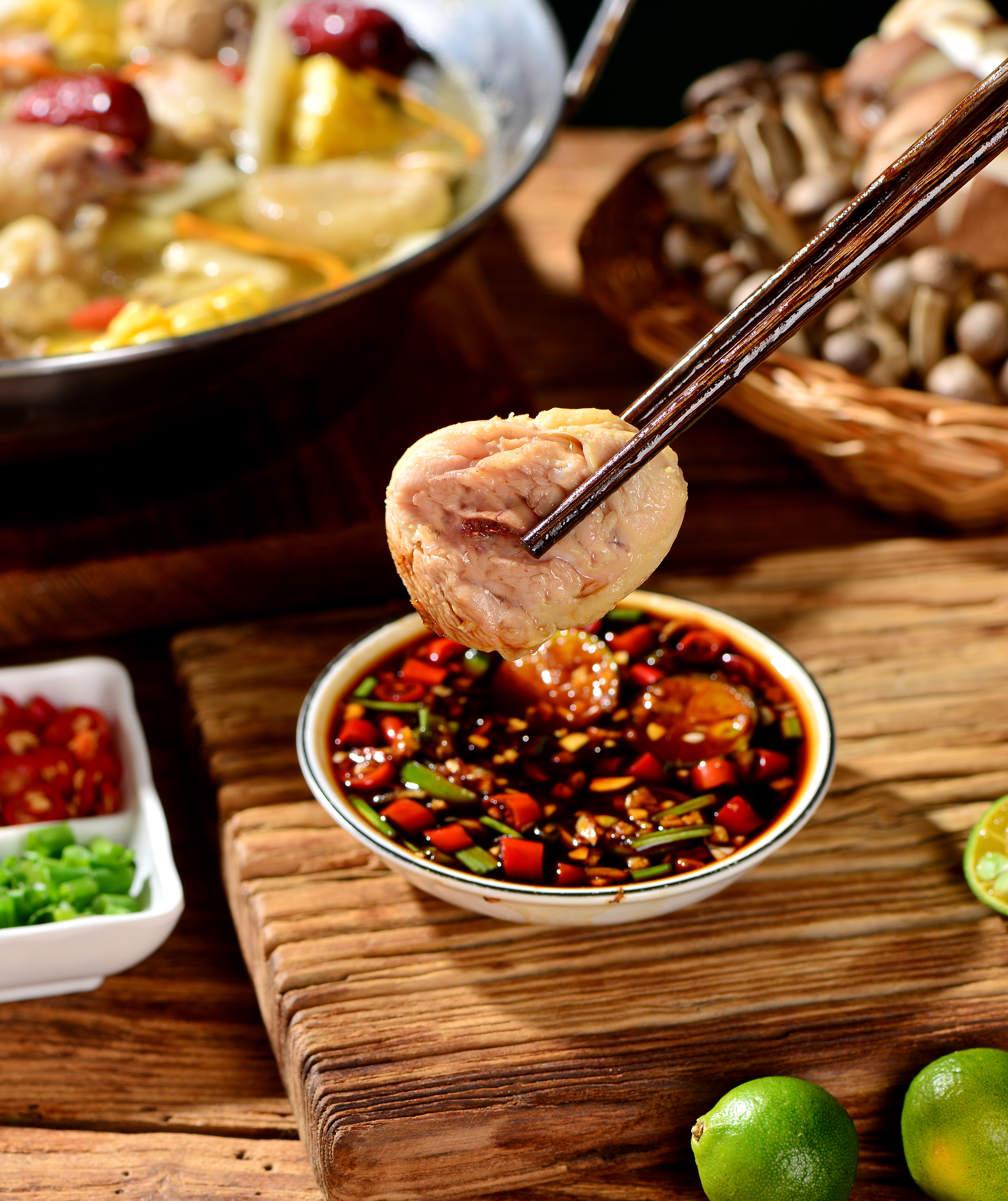 Flavor-enhancing dipping sauce: The classic dipping sauce follows a well-known ratio of 20 g minced sand ginger, 15 ml lime juice, and 30 ml light soy sauce. The acidity effectively heightens the chicken's natural savoriness.