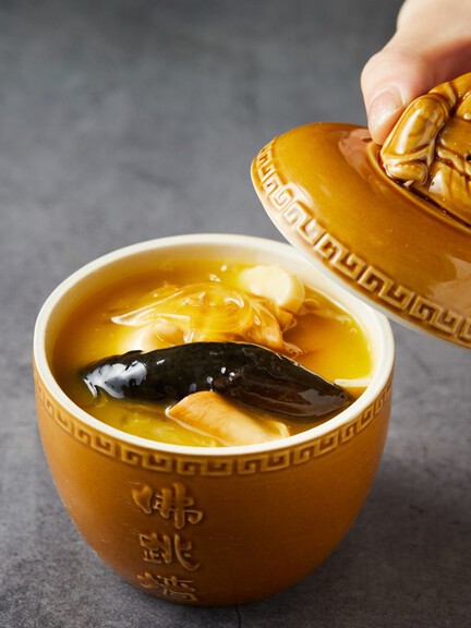 The name "Buddha Jumps Over the Wall" carries a poetic legend. It is said that the aroma of the dish was so enticing that even a monk, upon catching its scent, leapt over a monastery wall to taste it, hence the name. The dish was originally called "Fushouquan" (meaning "Fortune and Longevity in Full"), which sounds similar to "Buddha Jumps Over the Wall" in the Fuzhou dialect, symbolizing blessings of health and long life.