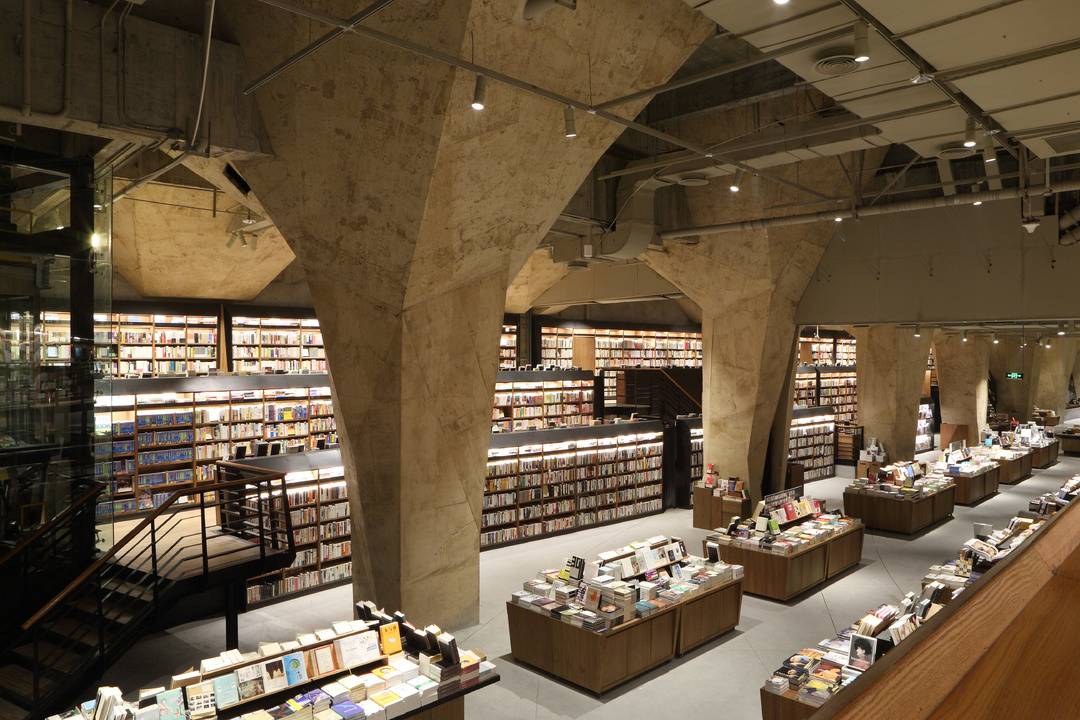 The bookstore is known for its unique cave-style industrial design.
