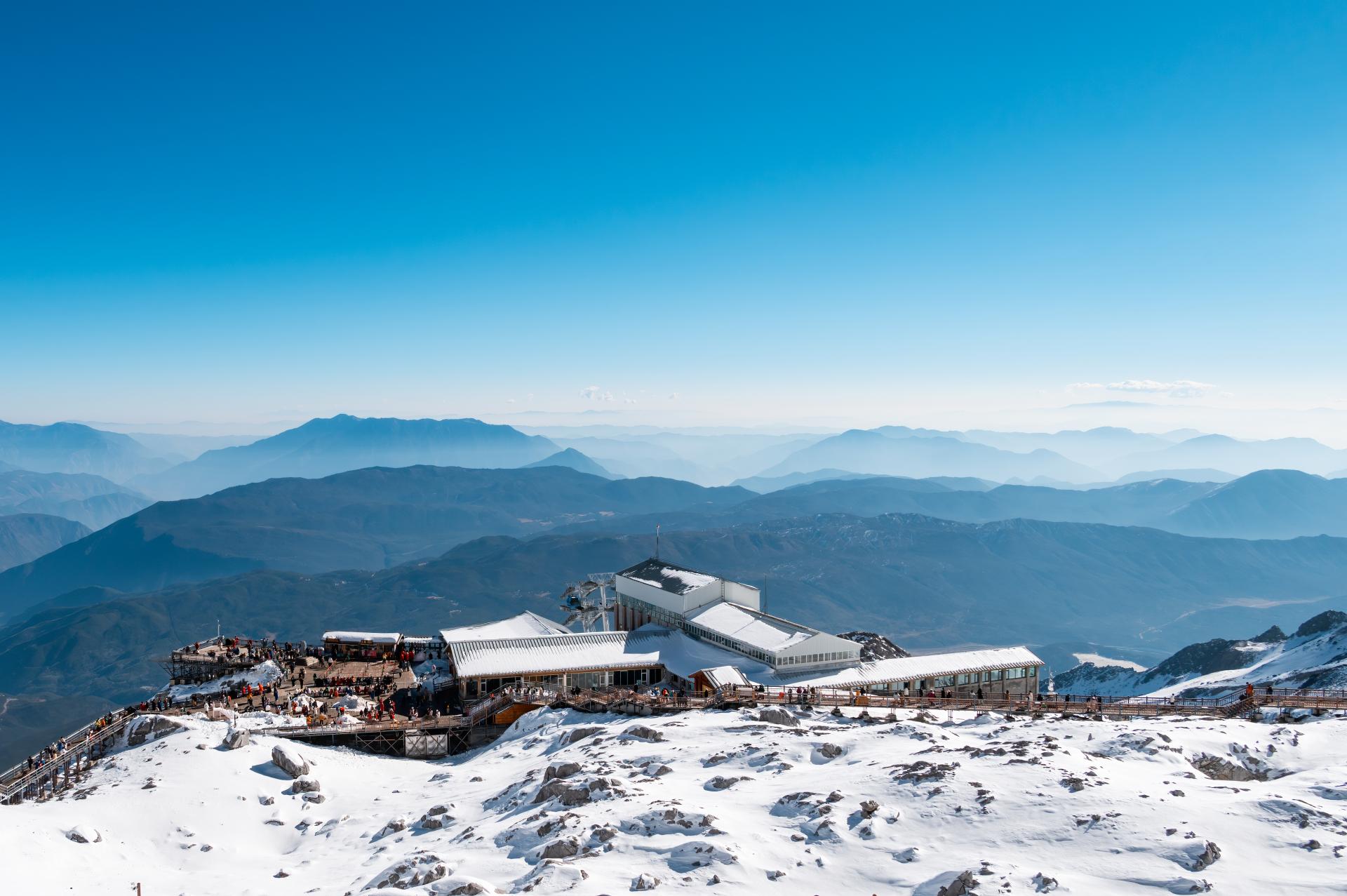 Featuring the largest glacial landscape in southwest China, visitors can take a cable car directly to the viewing platform at 4,506 meters above sea level. From there, a walk along the plank path leads to the monument at 4,680 meters, a popular photo spot. On clear days, visitors may witness the spectacular phenomenon known as the "Sunlit Golden Peaks."