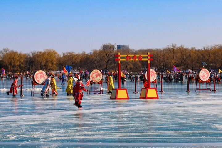 Originating during the Qianlong Period (1736–1795), Ice Play ("Bingxi") was a distinctive ice sport of the Qing imperial court. In deep winter, visitors can explore sites such as Beihai Park, Shichahai, Yuanmingyuan Park, and the Summer Palace to witness Ice Play's pageantry. If fortunate, they may encounter performers wearing elaborate Eight Banners costumes.