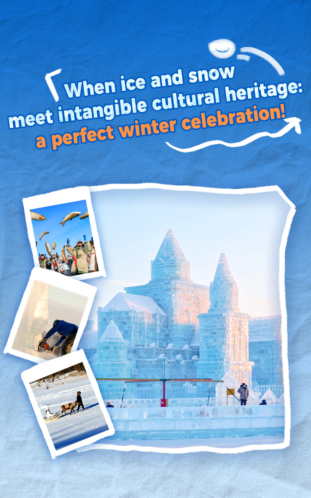Ice sculptures, snow carvings, winter fishing on frozen lakes, snow sleds, etc.—these are not only popular winter tourism experiences but also long-standing elements of intangible cultural heritage.
