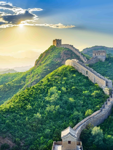 The Badaling Great Wall, located at the northern entrance of the ancient Jundu Mountains in Yanqing District, Beijing, is an important part of the Great Wall of China and a strategic pass of the Ming Dynasty Great Wall. As the first rays of sunlight rise above the surrounding ridges and gently illuminate the centuries-old stone ramparts, a magnificent panorama unfolds, where history and nature merge in a moment of timeless beauty.