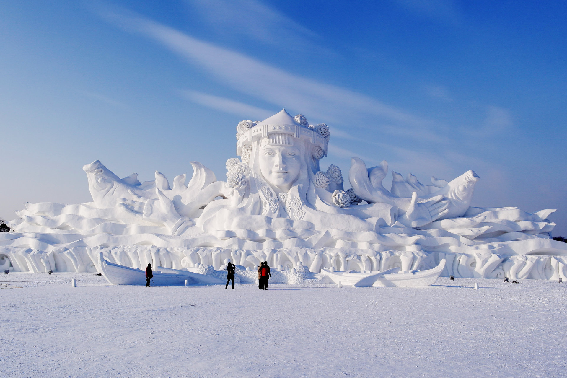 Harbin Songhua River Ice and Snow Carnival: Once the Songhua River freezes over, its vast surface becomes a massive natural playground. Visitors can immerse themselves in authentic northern winter fun by enjoying activities like skating, sleigh rides, and thrilling rides on ice hovercraft.