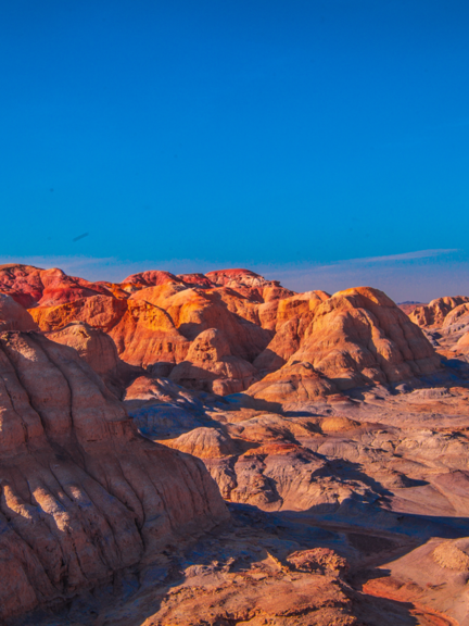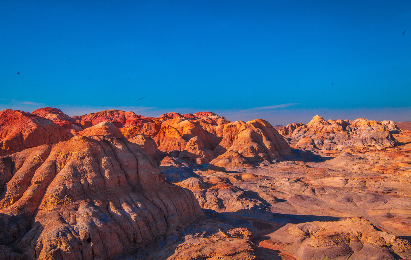 Yardang landforms are sculpted by long-term wind erosion, creating parallel ridges and grooves. In China, they cover more than 20,000 square kilometers. Their dramatic, otherworldly shapes, combined with eerie wind sounds, have earned them the nickname "Devil Cities".