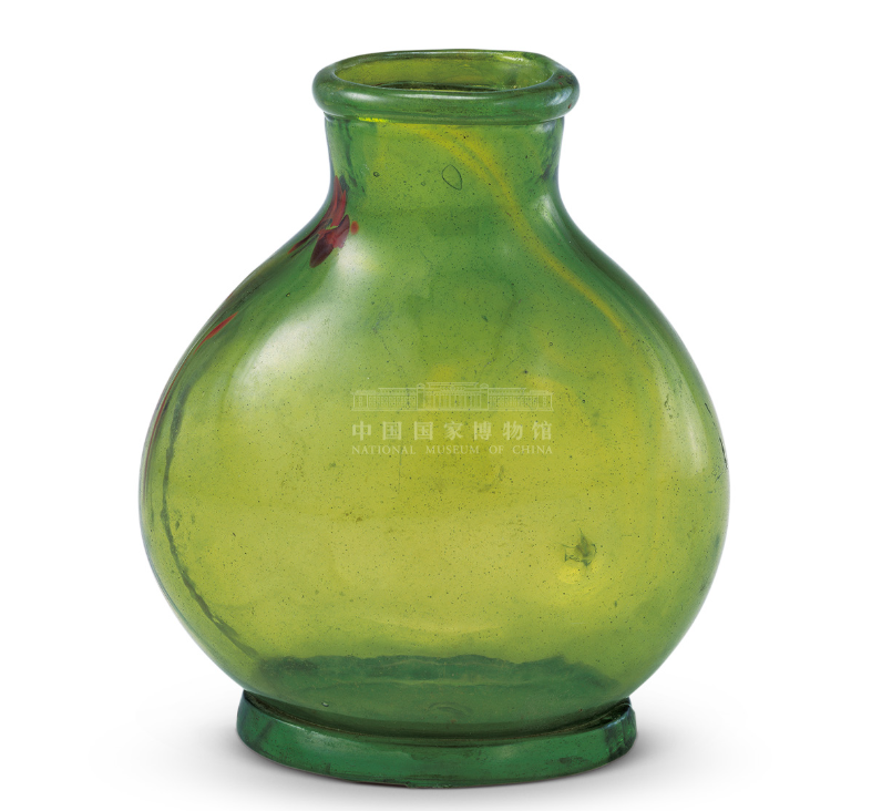 Both the mouth and the cross-section of the body of this glass bottle are oval in shape. It was made using a blowing technique, with extremely thin walls that are crystal-clear and jade-like. While its form follows traditional Chinese shapes, analysis shows that its material is high-lead glass, indicating that it was manufactured in China.