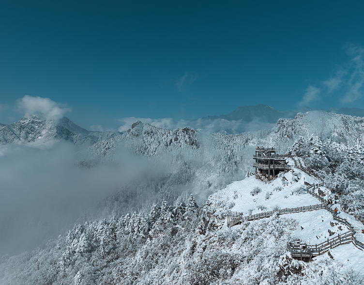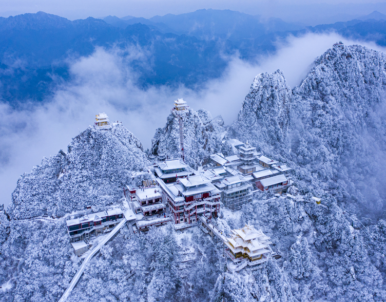 Snow-draped Laojun Mountain resembles a palace in the sky.