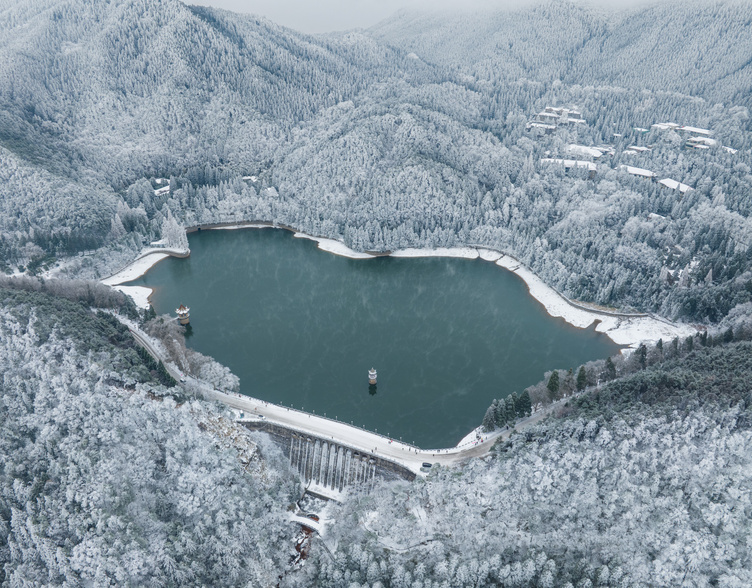 After snowfall, all the peaks of Mount Lushan are blanketed in white.